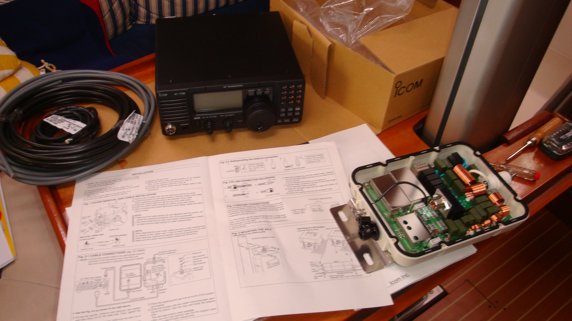 Die Kommunikationstechnik bestand bisher aus einem UKW und einer WetterInfoBox. Wir rüsten das Schiff für die Überfahrten zusätzlich nun mit einem Handfunkgerät, einer Kurzwellensendeanlage mit Pactormodem und einem aktiven Radartransponder aus und denken aus Sicherheitsgründen auch über ein Satellitentelefon nach.