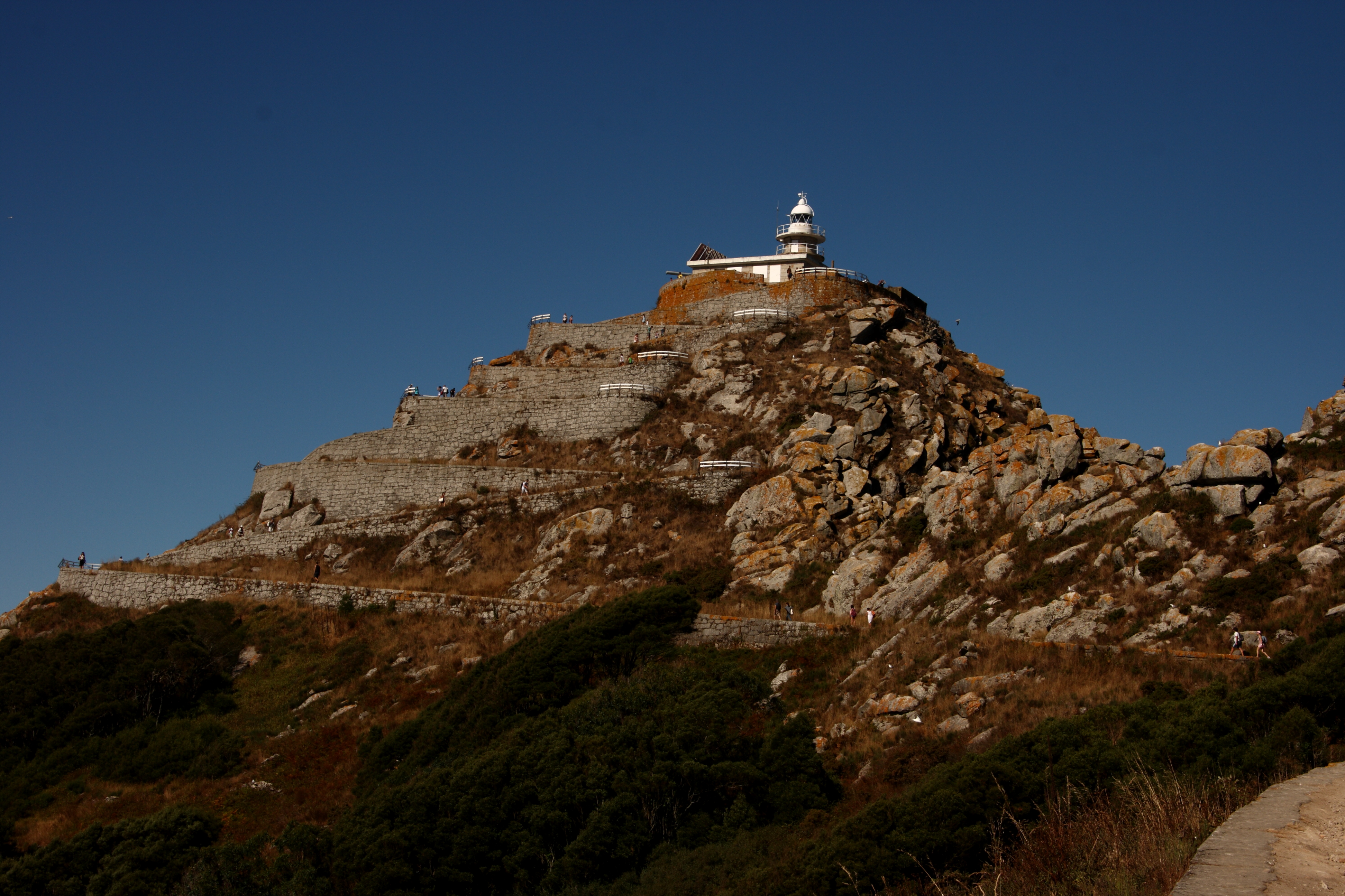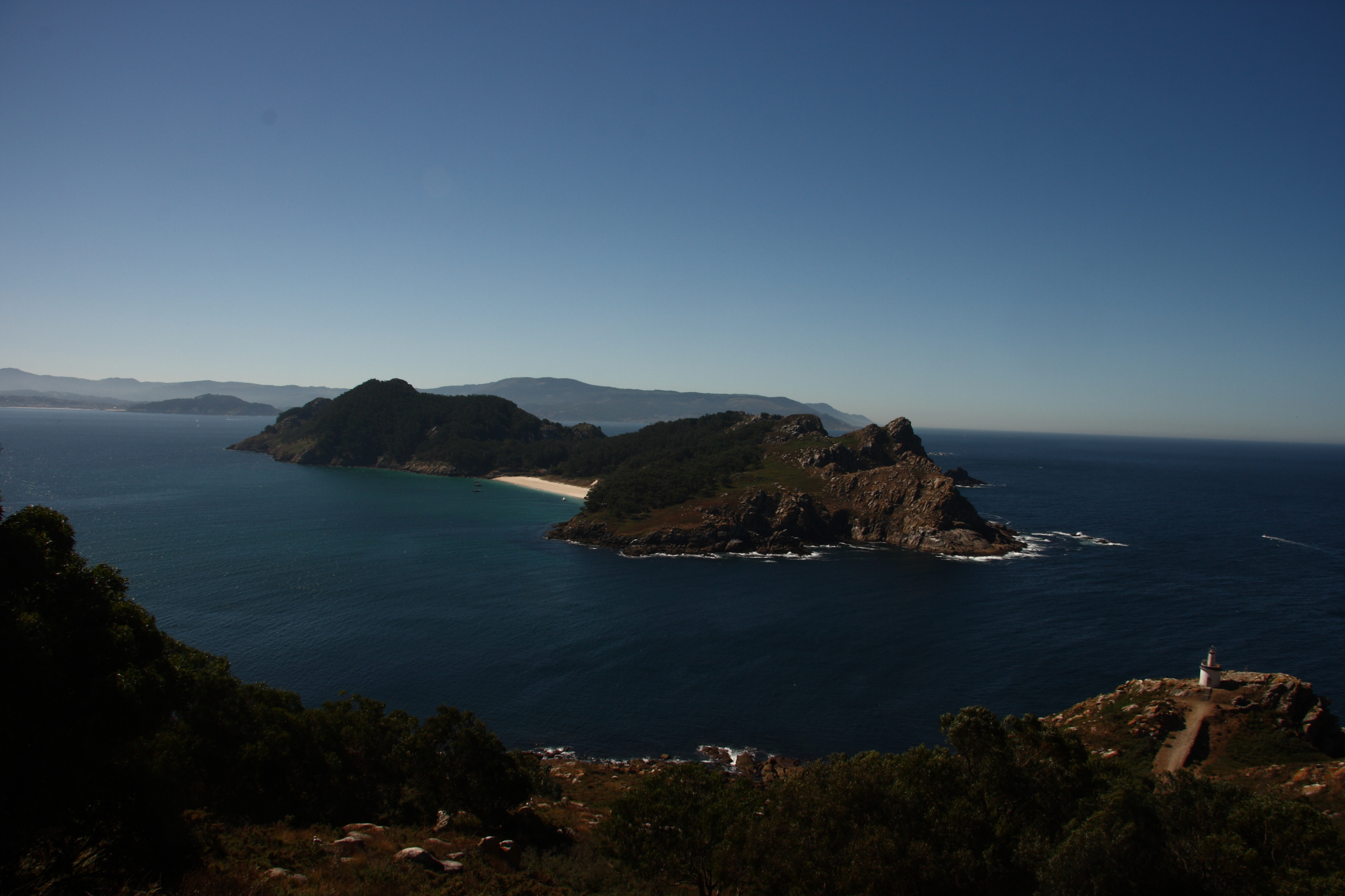 Als am nächsten Morgen der Wind schwächer war, setzen wir mit dem Beiboot über und wandern auf den Berg der Insel Cíes, der vom Leuchtturm gekrönt wird.