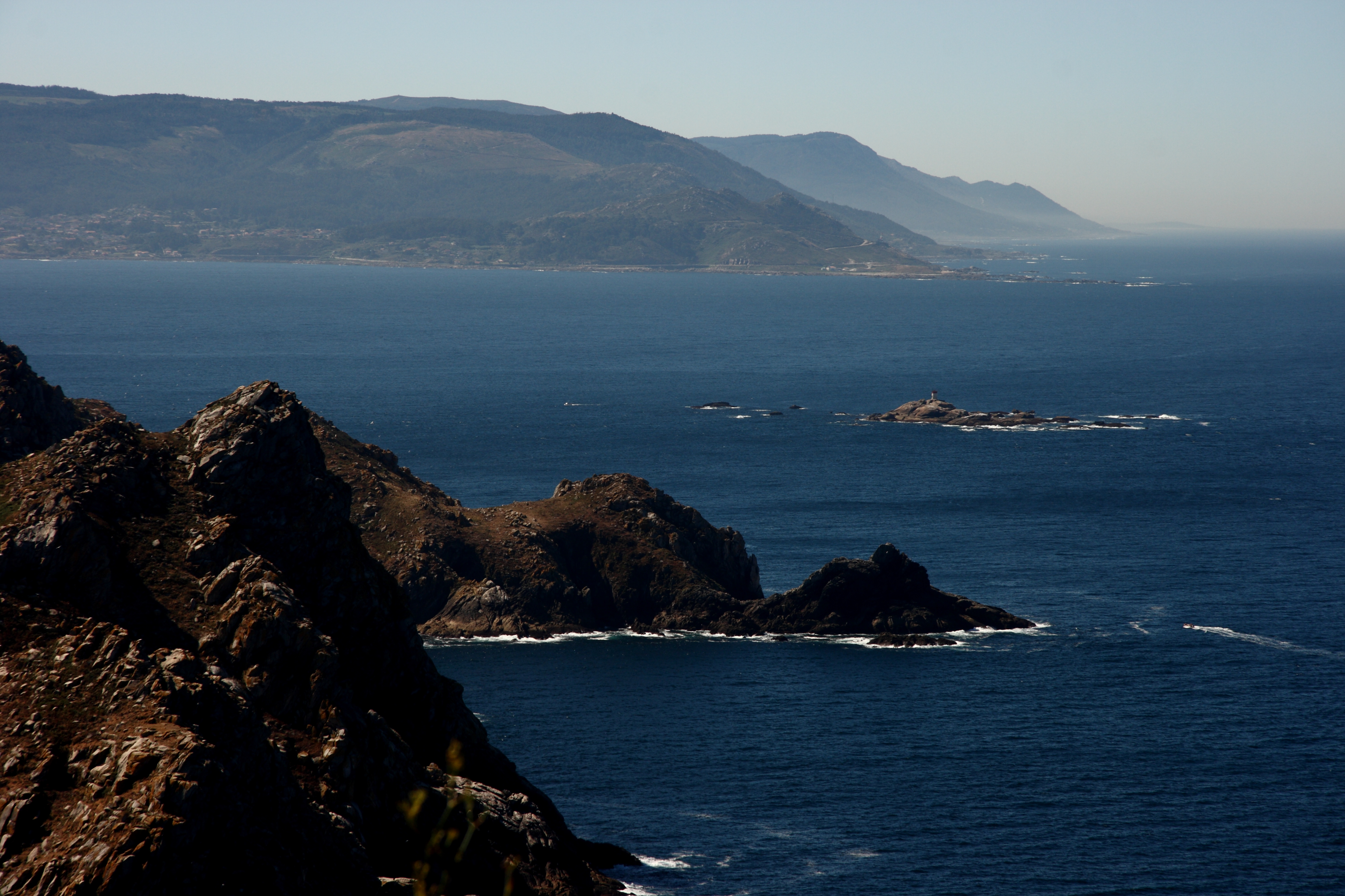 Von hier oben haben wir eine herrliche Sicht über die Insellandschaft und die Galizische Küste.