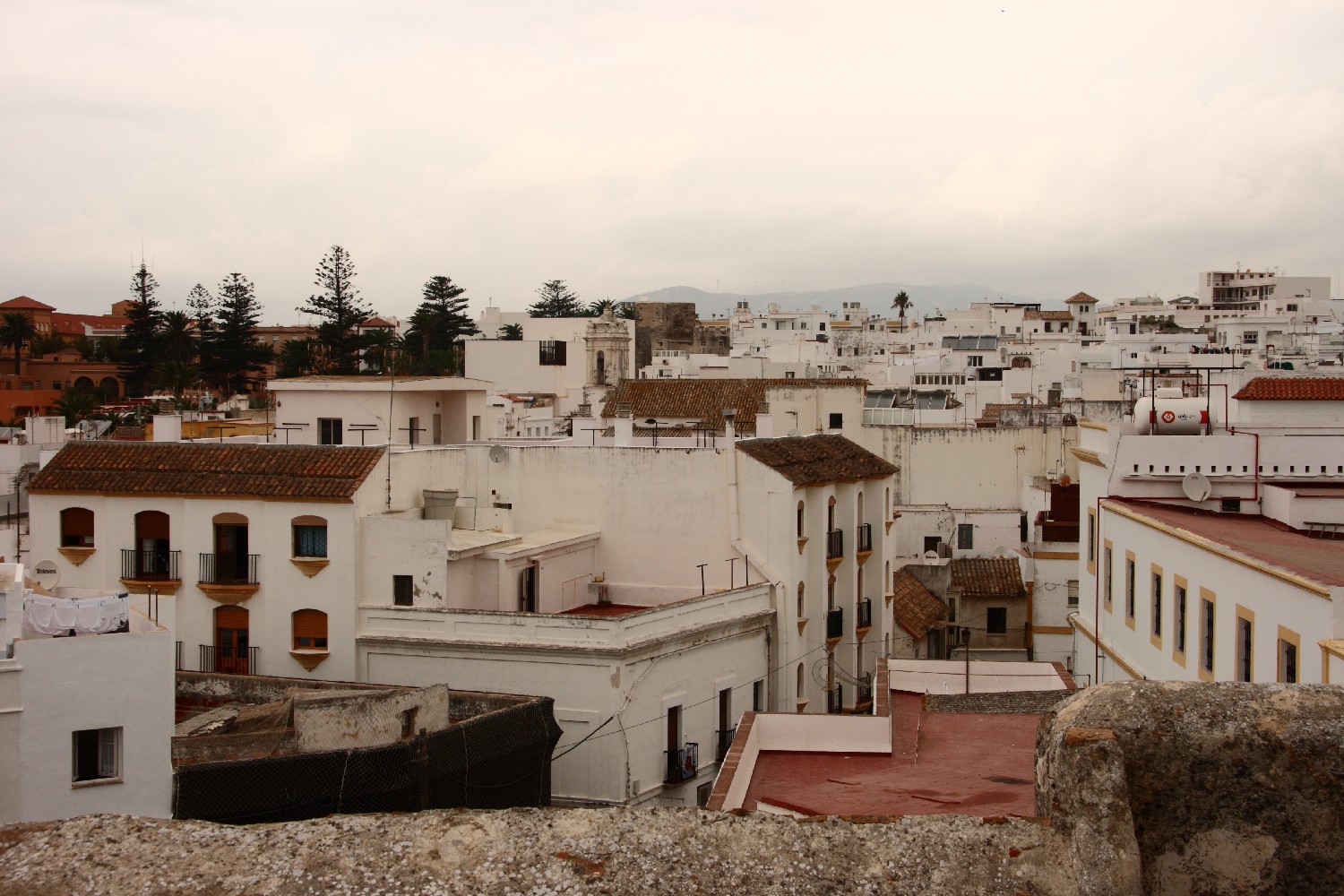 Da zwar über Nacht ein frischer Wind, aber für die nächsten Tage  kaum Wind angesagt ist, wollen wir die Gelegenheit nutzen und segeln durch die Nacht, soweit wie wir kommen. Wir sind nach der Gedenkminute beim Kap Trafalgar weiter gesegelt bis fast nach Afrika, nämlich bis zu der andalusischen Hafenstadt Tarifa. Der Hafen ist von den Fähren nach Tanger geprägt. Für uns ist kein Platz, sodass wir in einer Bucht vor der Hafeneinfahrt ankern und mit dem Schlauchboot übersetzen, um die alte Stadt und das Kastell zu besichtigen. Wir essen „roten Tunfisch“, die lokale Spezialität. Gerne wären wir bis Gibraltar gesegelt, aber die angesagte Flaute und die Strömungsverhältnisse haben uns bewogen, hier umzudrehen. Tarifa ist ja auch nicht der schlechteste Punkt, Er markiert die engste Stelle zwischen Europa und Afrika. Die Meerenge ist mit 8 Seemeilen deutlich enger als die Kanalstrecke zwischen England und Frankreich mit 18 sm. Noch zwei Superlativen, denn wir waren ja schon am „Lend’s End“ in England und am Cabo Finisterre: nun Tarifa, es liegt am südlichsten Punkt vom Festland-Europa, nur Inseln wie z. B. Kreta liegen südlicher. Weiterhin bildet es genau an der Nahtstelle zwischen Atlantik und Mittelmeer. Wir waren also auch im Mittelmeer und nach 12 h Aufenthalt wollen wir schon wieder einen leichten Südwind nutzen, um in Teilstücken die Küste bis Cadiz zurück nach Norden zu segeln.