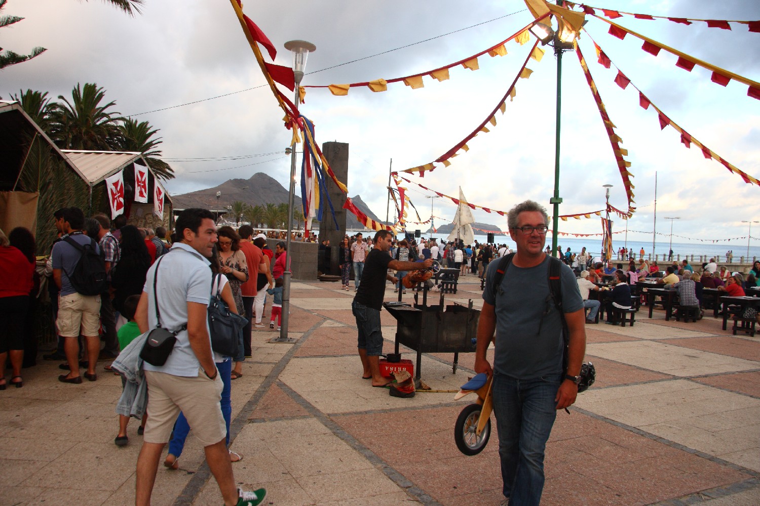 In Porto Santa legten wir an, als die Stadt ein Fest zu Ehren von Christoph Kolumbus feierte. Seine Frau war hier geboren und deshalb lebte er hier einige Zeit. Mich erinnert das Schauspiel am Strand, wo ein Nachbau der Santa Maria Kolumbus am Strand absetzte an die Störtebecker  Festspiele in Ralswiek.