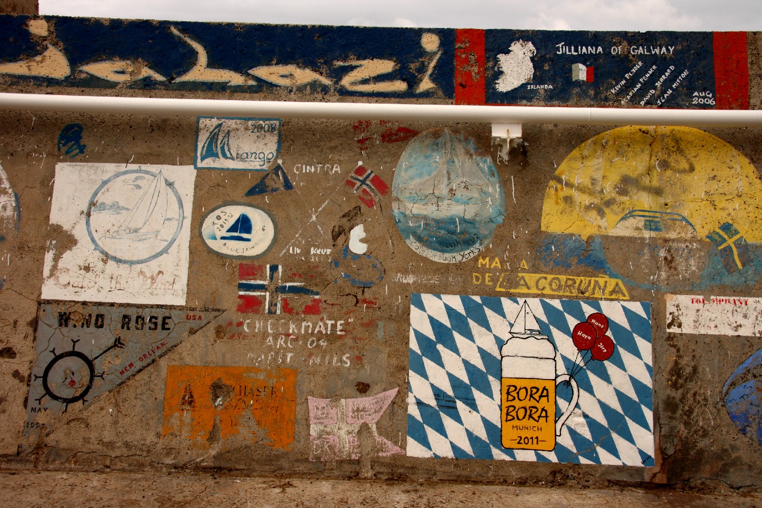 Porto Santo ist der erste Hafen für uns, der nur von Fahrtenseglern erreicht wird. Normale Segler erreichen diesen Außenposten wegen der Entfernung von 5 Tagesreisen nicht mehr. Die Blauwassersegler sind unter sich und das erzeugt eine eigene Stimmung und zeigt sich an der langen Kaimauer, wo sich Hunderte in den letzten Jahren mit einem Bild von ihrer Reise verewigt haben.