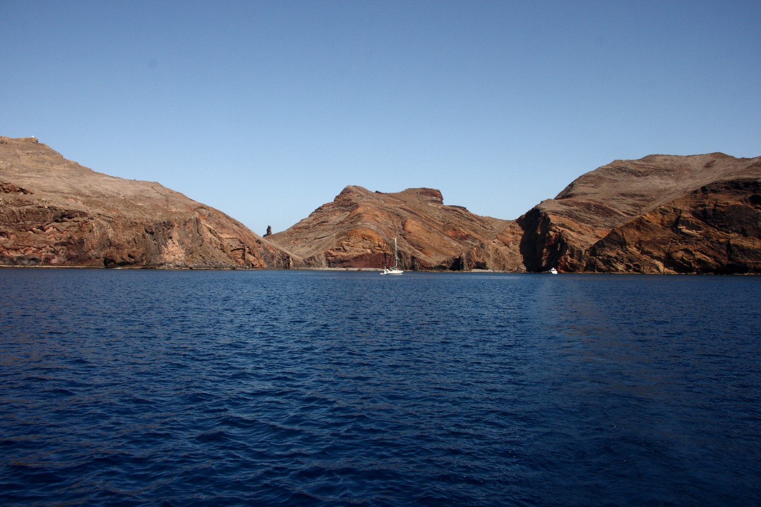 Madeira 019 Madeira 020Nach zwei Tagen setzen wir über auf die Hauptinsel und verbringen eine Nacht in der Ankerbucht Enseada da Abra, die von einer fantastischen Felskulisse am Östlichen Kap von Madeira umschossen ist.