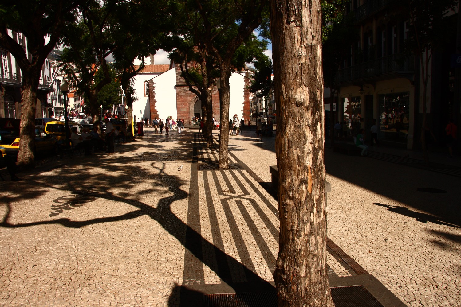 Madeira 076Von hier segeln wir nach Funchal, der Hauptstadt von Madeira und finden in dem viel zu kleinen Hafen zufällig einen Liegeplatz. Nach vielen Wochen Segeln soll das Boot hier zwei Wochen liegen. Für mich ist es die Gelegenheit etwas Ruhe zu finden und die Insel zu erkunden. Wir unternehmen Streifzüge durch die Stadt. Besonders gefallen uns die Mosaik-Pflastersteine in den Straßenzügen, ein paar Beispiele zeigen die Vielfalt.