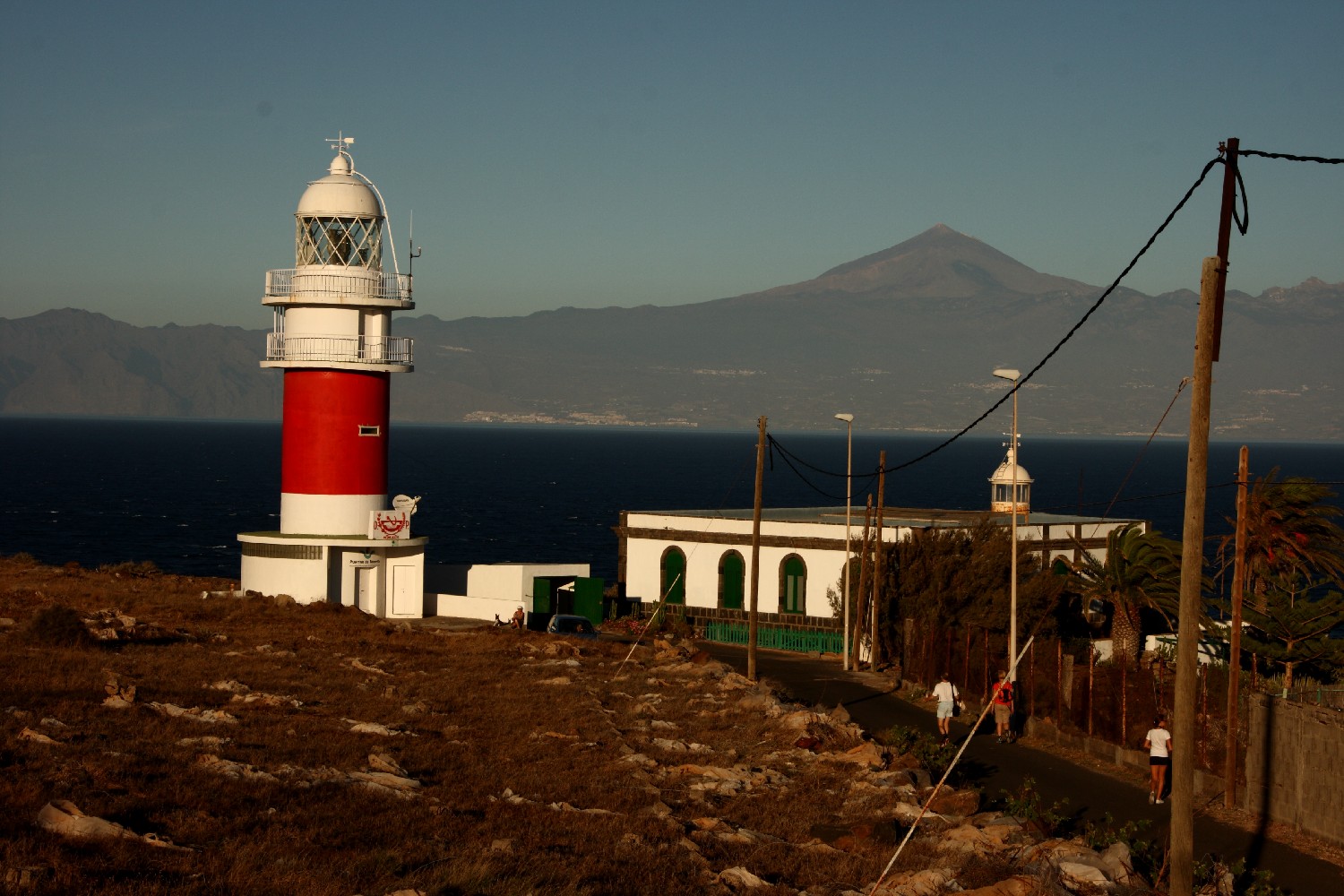 Leuchtturm Punta de San Cristobal mit Teide im Hintergrund