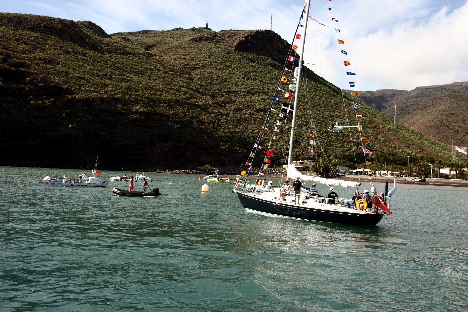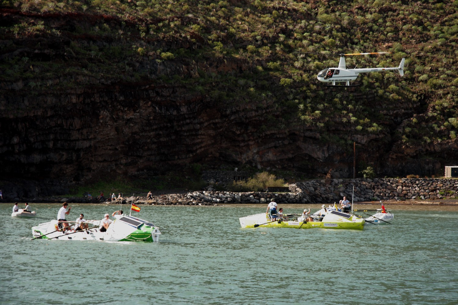 Auf Gomera wurden wir angesprochen, ob wir als Begleitboot für die Atlantic Challange 2013 helfen wollen. http://www.taliskerwhiskyatlanticchallenge.com/.Da haben wir natürlich ja gesagt und haben die Eltern einer Teilnehmerin und deren Schwester an Bord genommen, um den Start der Ruderboote zu begleiten. Man stelle sich vor, in einem Ruderboot den Atlantik in ca. 40 – 70 Tagen zu überqueren und das mit ausschließlich Muskelkraft, allerdings hilft die Strömung etwas. Die Boote sind technisch anspruchsvoll und gut ausgerüstet. Nur mit Trockenfutter proviantiert und das Wasser wird mit Watermakern (natürlich auch mit viel Muskelkraft) unterwegs produziert. Die Boote wiegen etwa 1,5 Tonnen und werden zu zweit oder zu viert, aber auch einhand gerudert. Ein Boot nimmt mit Veteranen aus dem Afghanistaneinsatz, die teilweise beide Beine verloren hatten. Ein Teil der Crew rudert tagsüber zwei Stunden, während der andere Teil sich ausruht, nachts wechseln die Crews stündlich.