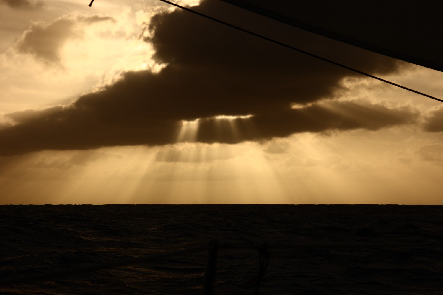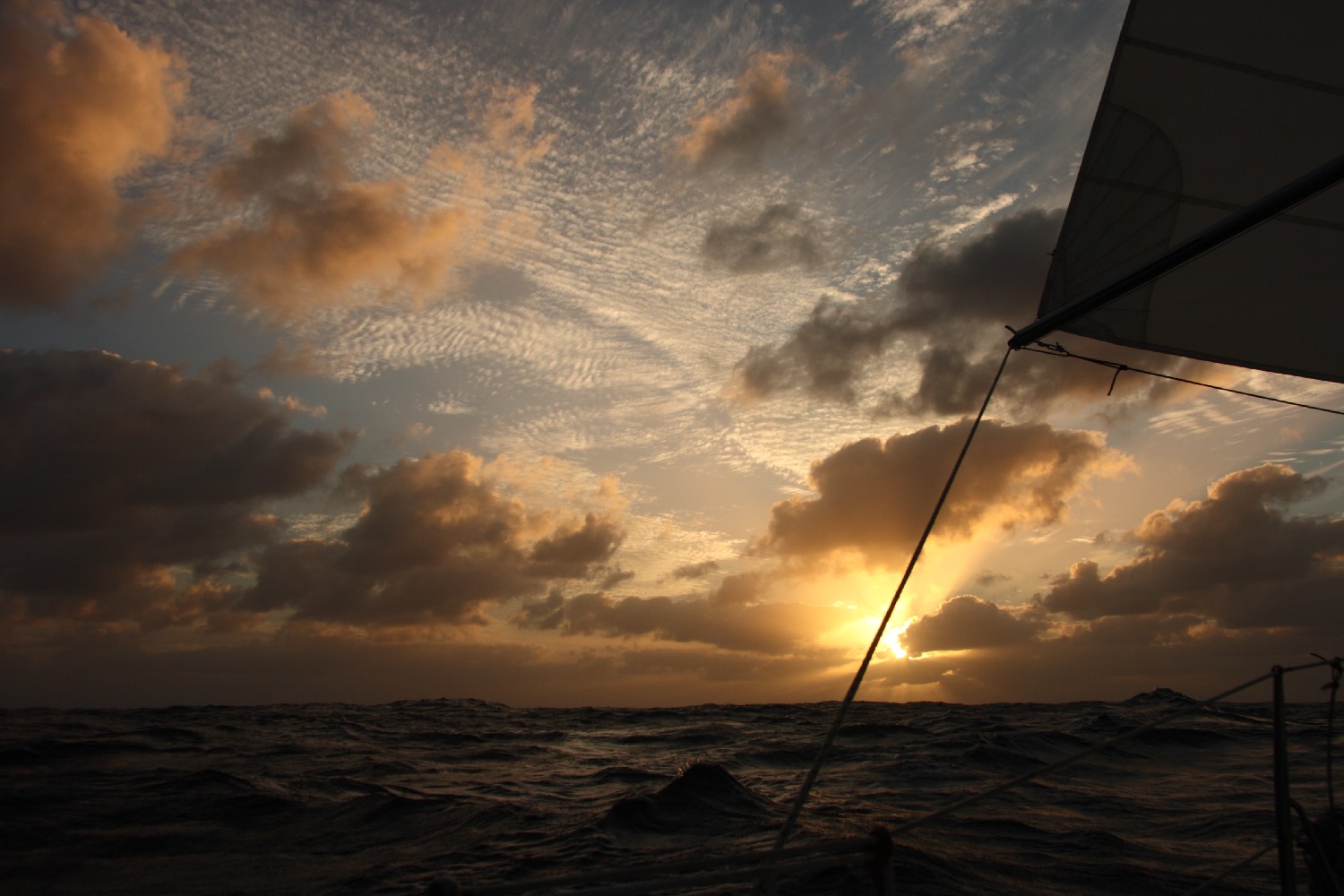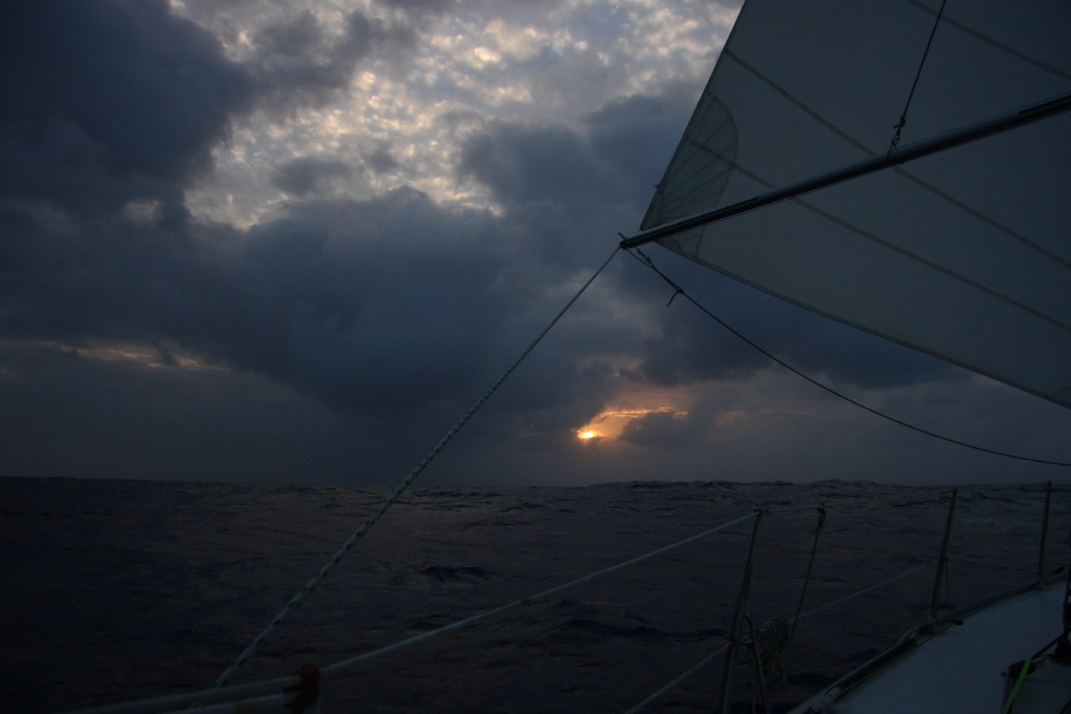 Wir kommen sehr gut voran. Die erste Hälfte des Atlantiks haben wir in 6 Tagen und 9 Stunden durchpflügt; das ist Durchschnitt von 6,6 kn. Die letzten fünf Etmale lagen zwischen 165 und 170 sm. Wir haben unser Wachsystem von Zwei-Stunden-Wachen beibehalten. Jeder hat nacheinander zwei Stunden aktive Wache, dann zwei Stunden passive Bereitschaft und dann 4 Stunden Freiwache. Da die gesamte Crew gute Segler sind, leben  wir mit dem Luxus, dass wir nachts bis zu sechs Stunden schlafen können. Theoretisch. Der Praxisrekord liegt bei knapp 2 Stunden. Tagsüber ist immer etwas zu tun, natürlich ist auch immer mal wieder Zeit für ein Nickerchen, um Schlaf nachzuholen. Wir sind erschrocken, dass die Hälfte schon rum ist. Wir werden uns bewusst, dass es wichtig ist, auch Zeit alleine mit dem Atlantik zu verbringen. Einfach dasitzen und die Wellen und den Himmel beobachten, besonders nachts den Mond und die Sterne. Es gibt viel Ablenkung. Viele Freunde haben uns mit Hörbüchern und Musik, auch mit Filmen versorgt, sodass wir uns auch hier an Bord unter Medien setzen können. Aber wir genießen auch die See.