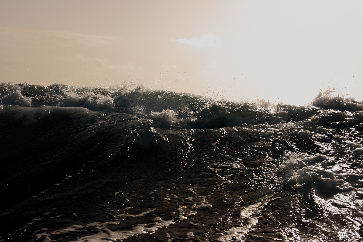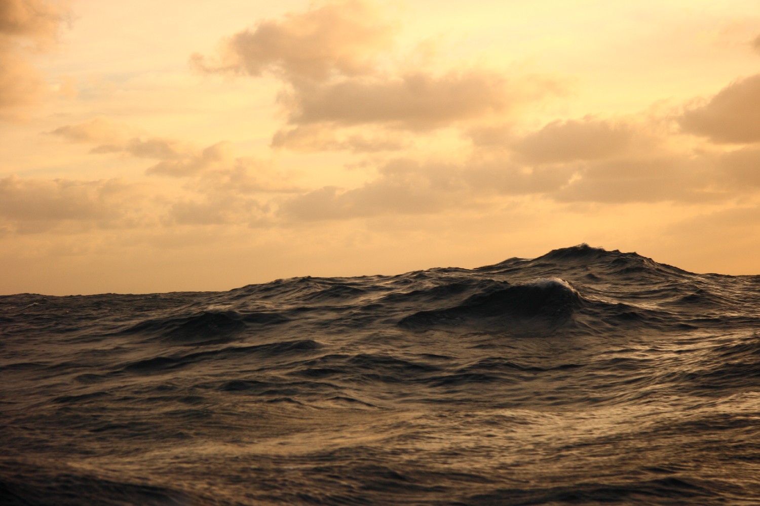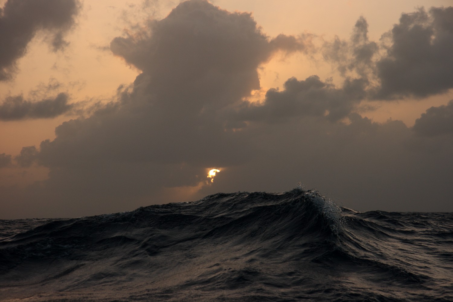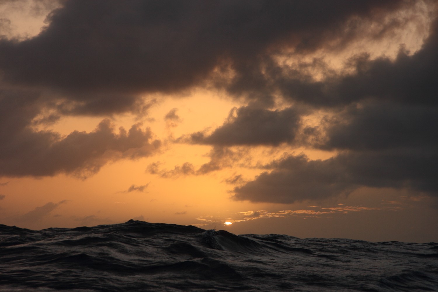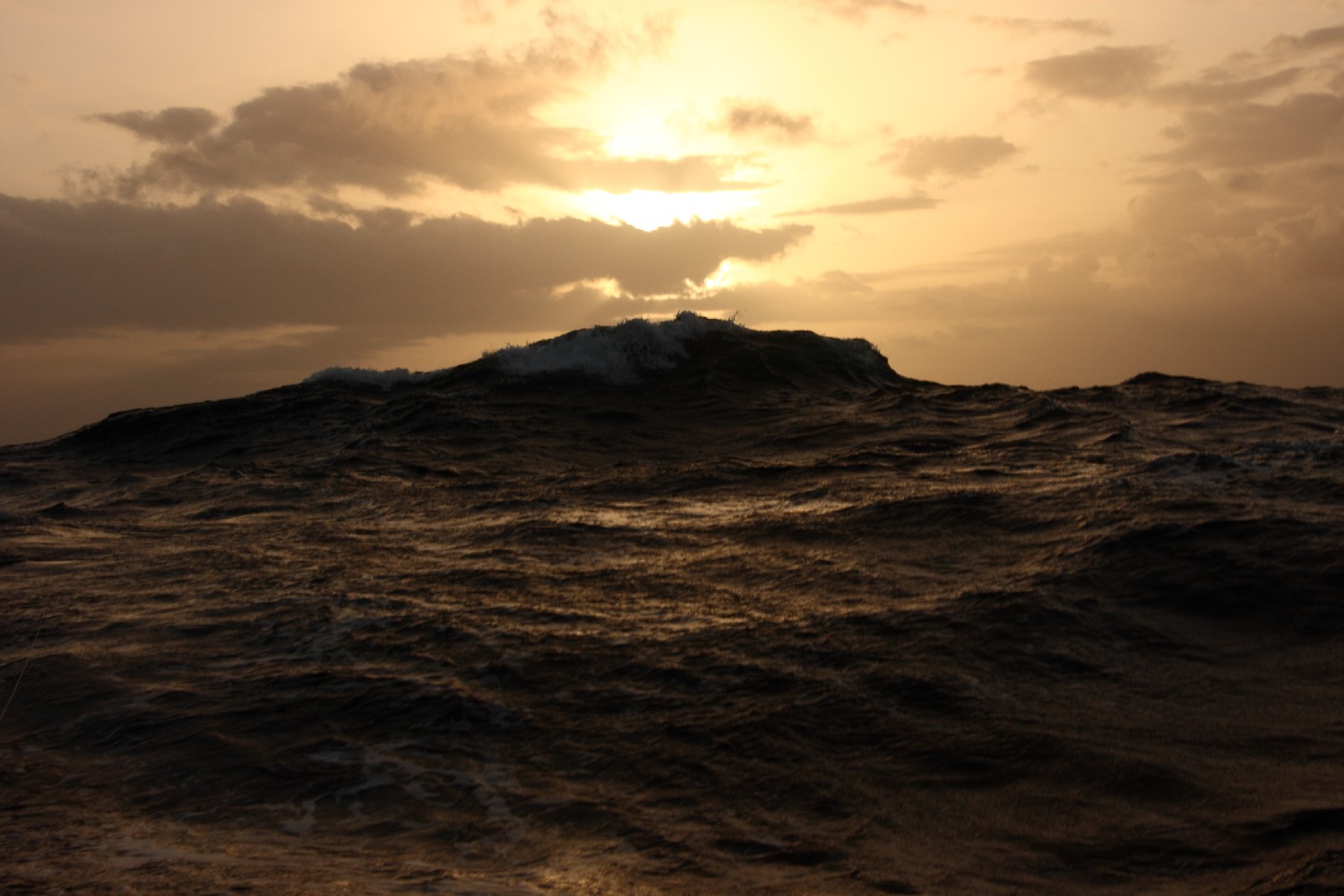Dann ist es die See selbst, die uns umgibt und fasziniert. Ständig schauen wir in die See und in den Himmel. Wir beobachten die Wellenformationen und die Wolken. Die Formen, die Schattierungen und die Farben wechseln ständig. Olaf will dies in einem Projekt aufnehmen. Dazu fotografieren wir zu festgesetzten Zeitpunkten um 9, 12, 15, 18 und 21 Uhr UTC das Wolken- und Wellenspiel um uns herum und notieren jeweils zur Dokumentation unsere Position dazu. Wir sind sehr gespannt, was Olaf um diesen Rahmen herum entstehen lässt.