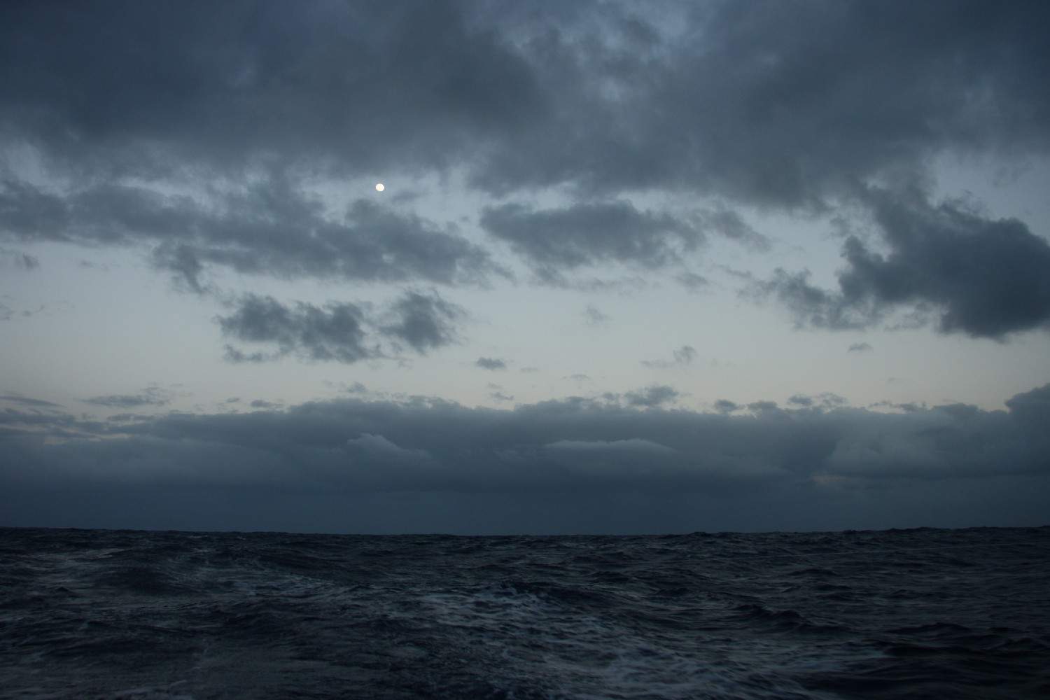 Der Mond während einer Langzeitbelichtung zeigt die Bewegungen des Bootes recht anschaulich