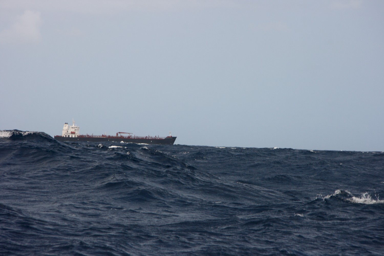 Und da verschwindet der Tanker wieder hinter der Atlantikwelle…