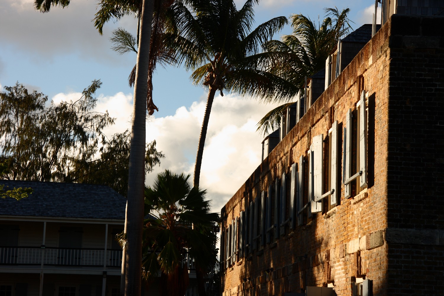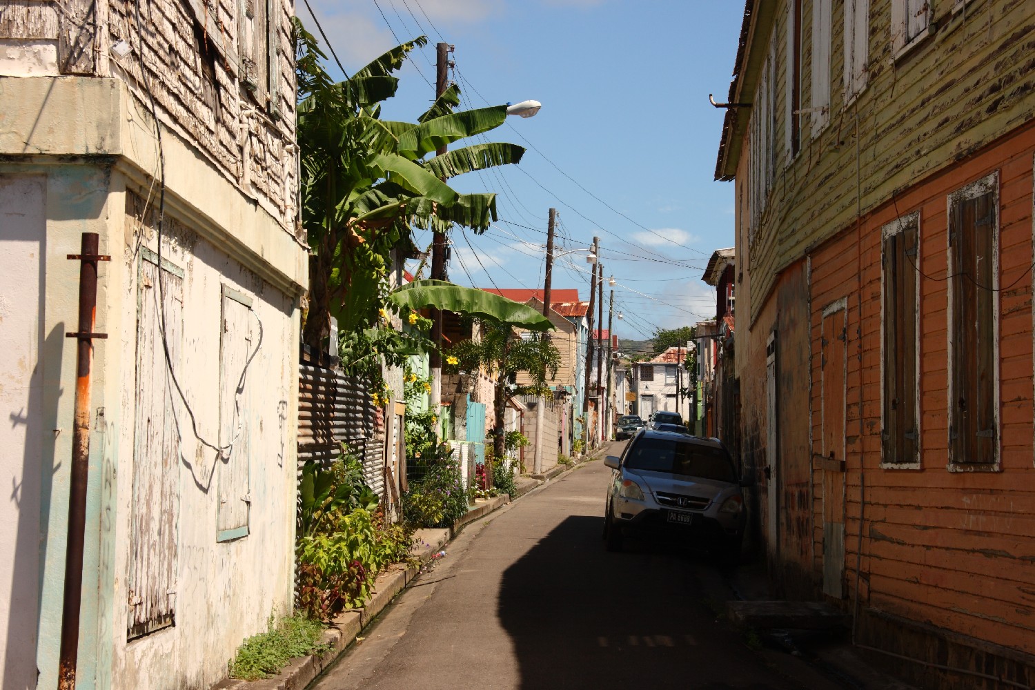 Auf St. Kitts genießen wir es, nach Wochen auf See, endlich einmal wieder in einer Marina zu liegen und die Dusche so oft zu besuchen, wie wir es wollen. Wir hatten die Insel ausgesucht, da wir hier im Unterschied zu St. Martin weniger Tourismus erwarteten. Wir durchstreifen zufrieden die Stadt und finden interessante Häuser und Ausblicke und finden ein nettes Lokal (später finden wir im Hafenführer den Hinweis: „Gourmet-Restaurant“), wo wir uns mit einer Kleinigkeit zu Mittag verwöhnen lassen und uns von einer angenehmen Meeresbrise aus der sengenden Sonne kommend kühlen. Unser Thermometer im Schiff zeigt auch jetzt um 17:35 Uhr noch 31°C.