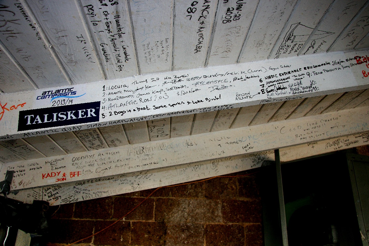 Der zweite Kreis schließt sich mit der Atlantic Challenge (http://www.taliskerwhiskyatlanticchallenge.com), deren Start wir im Dezember auf Gomera begleitet hatten. Die Gewinner waren in 43 Tagen bis nach Antigua gerudert. In einer Bar am English Harbour finden wir an der Decke die Auflistung der einlaufenden Ruderboote und erinnern uns wieder an die entbehrungsreiche Leistung. Da hatten wir es doch wesentlich angenehmer.