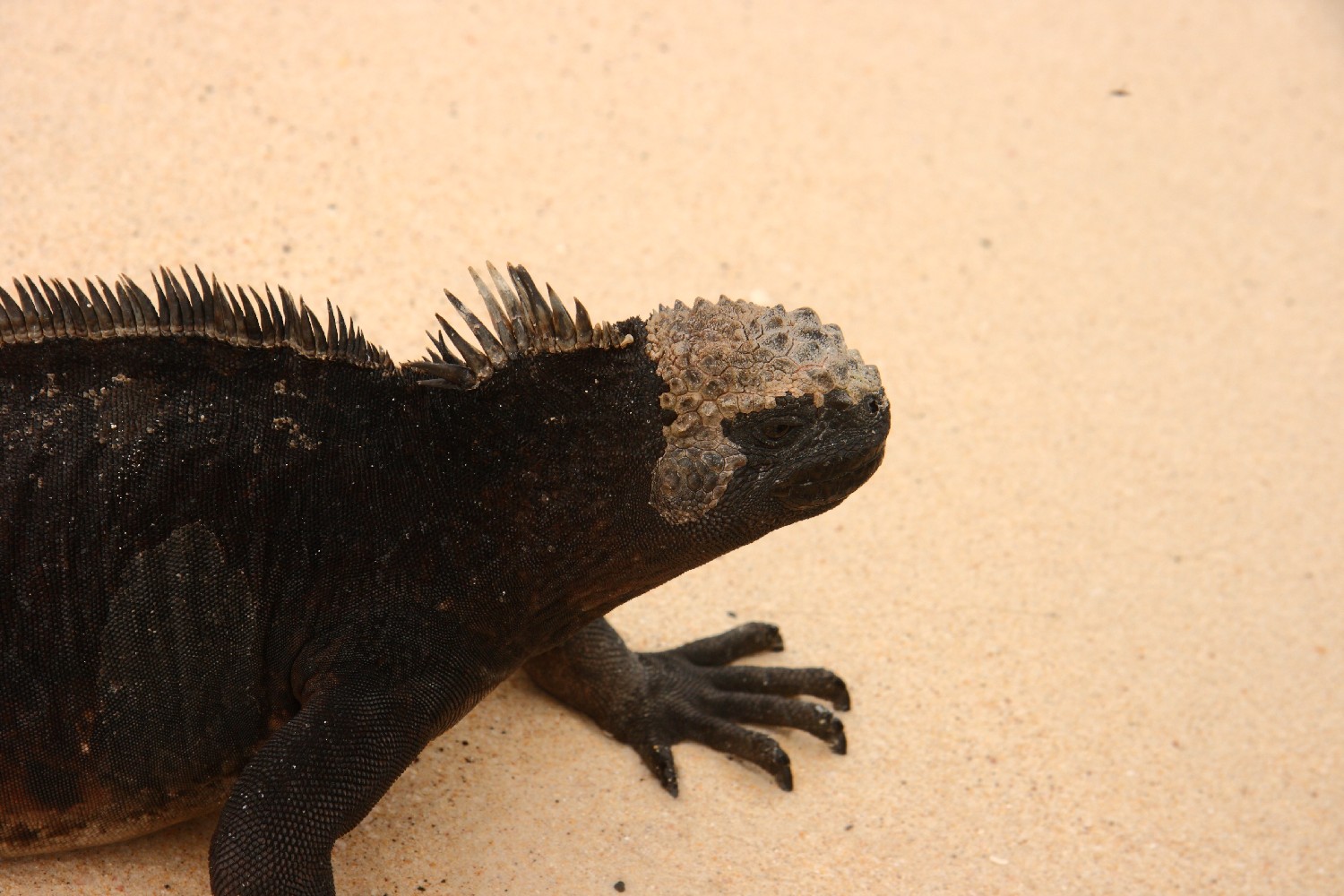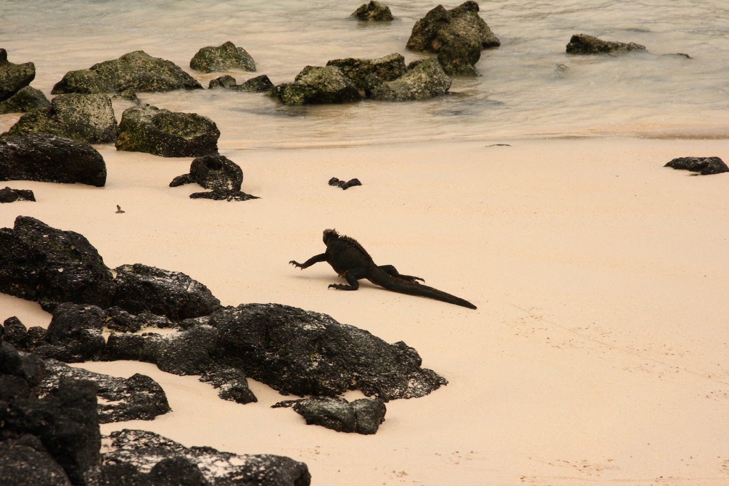 Leguan auf dem Weg vom Strand ins Wasser