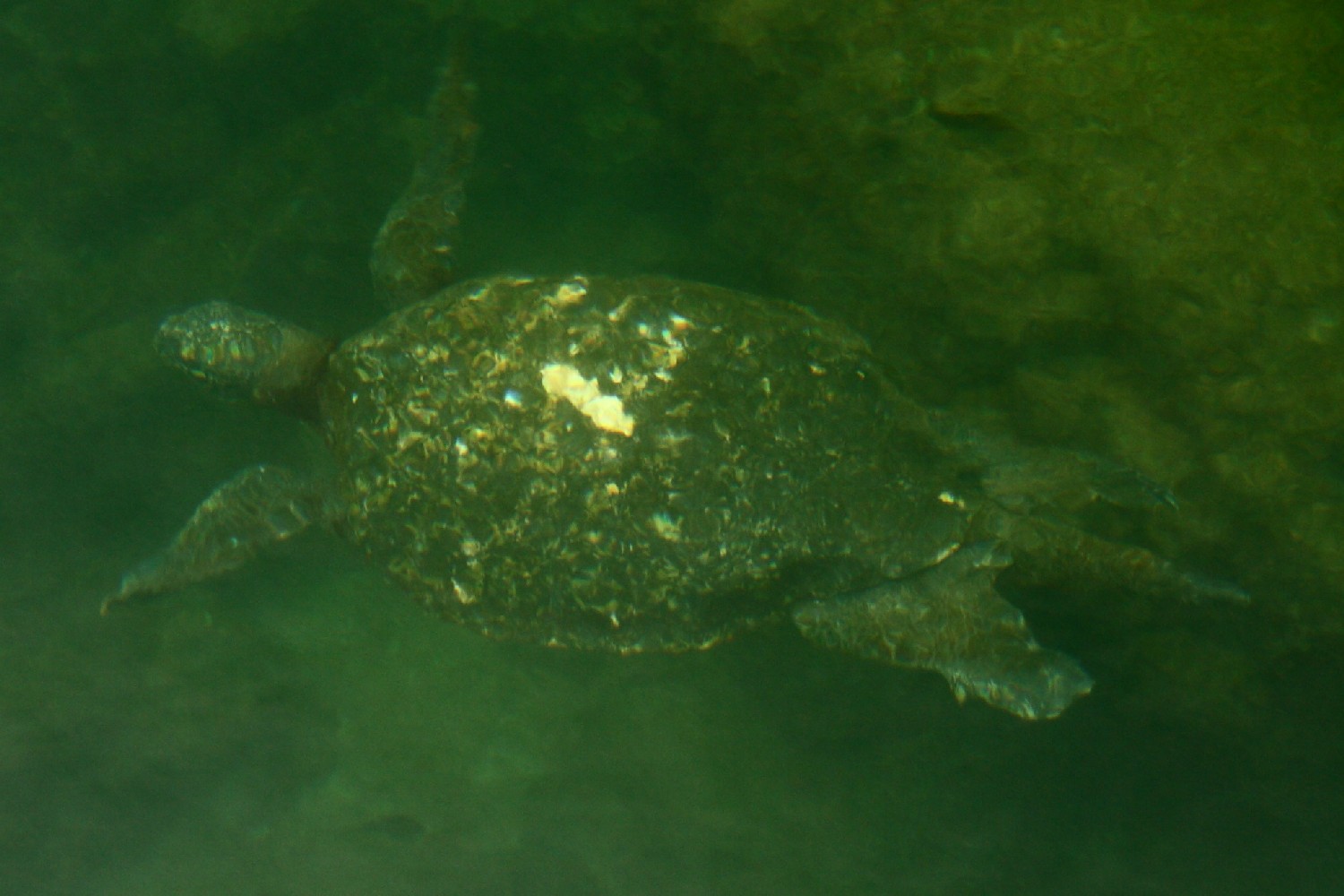 Am dritten Tag werden wir mit einem Motorboot zu Lavaformationen an der Küste gefahren, wo wir zwischen Haien schnorcheln dürfen. Leider ist das Wasser zunächst recht trübe, sodass wir keinen Hai sehen. Der Führer weiß, wo sie sich verstecken und taucht unter Felsüberhänge, um sie dort aufzustöbern. Mir ist dabei nicht wohl, dann doch lieber direkt neben riesigen Wasserschildkröten her schwimmen oder den Pinguinen zuschauen. Es sind übrigens die einzigen soweit nördlich, die es durch den kalten Humboldtstrom sogar am Äquator aushalten, denn eigentlich müsste es ihnen ja hier viel zu warm sein.