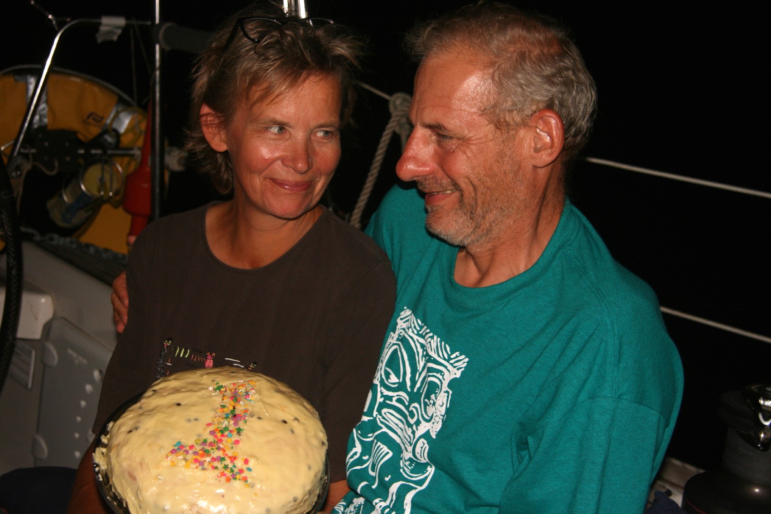 Natürlich bewegen uns diese Gedanken an diesem Jubiläum. Eine anderer ist folgender: Die erste Ozeanüberquerung gibt es nur einmal. Die Spannung, die sich in jedem Segler davor aufbaut, ist beim zweiten Mal nicht mehr die gleiche. Es gibt eben nur einmal das erste Mal. Dann kommt beinahe Normalität auf. Keine Heldentaten; das Segeln wird nahezu alltäglich und die Passagen werden fast zur Gewohnheit. Es sind so viele Passagen und Klippen, vor denen man am Beginn gehörige Ehrfurcht hat und wenn sie genommen sind, dann sind es Erlebnisse. Unsere Reise ergibt nach und nach ein Bild, das aus vielen Facetten zusammengesetzt ist, die Annette und ich in uns tragen. Viele davon teilen wir mit anderen Mitseglern und darüber sind wir sehr froh.