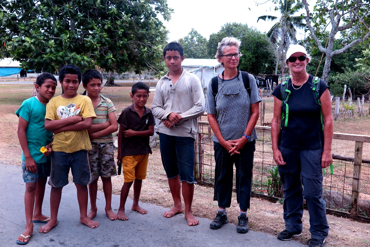 Sia und wir tauschten Adressen aus, denn in der Nacht war der Gedanke entstanden, dass wir uns in Zukunft statt über allgemeine Hilfsorganisationen vielleicht lieber direkt an die Dörfer wenden wollen, um für die Schulausbildung der Kinder zu spenden. In der Woche unseres Aufenthaltes waren Ferien, sodass uns fünf Kinder aus dem Dorf zwischen 10 und 16 Jahren bei einer Wanderung über den Bergrücken quer durch die Insel begleiteten, um uns den Weg durch das Dickicht zu zeigen. Sie kletterten auf Palmen, um uns mit Kokosnüssen zu erfrischen. Seit Monaten hat es nicht geregnet, was zu ungewohnter Trockenheit führte. Die Zisternen sind bei vielen Bewohnern schon leer und sie haben sehnsüchtig auf Regen gewartet. Es hat sich herumgesprochen, dass wir Wetterberichte für mehrere Tage im Voraus empfangen können und so wurden wir täglich gefragt, wann sie mit Regen rechnen können. Da ich Wolkengebilde mit hoher Regenwahrscheinlichkeit auf Niuatoputapu zuziehen sah, wagte ich die positive Prognose für das Wochenende und tatsächlich regnete es ab Samstag.