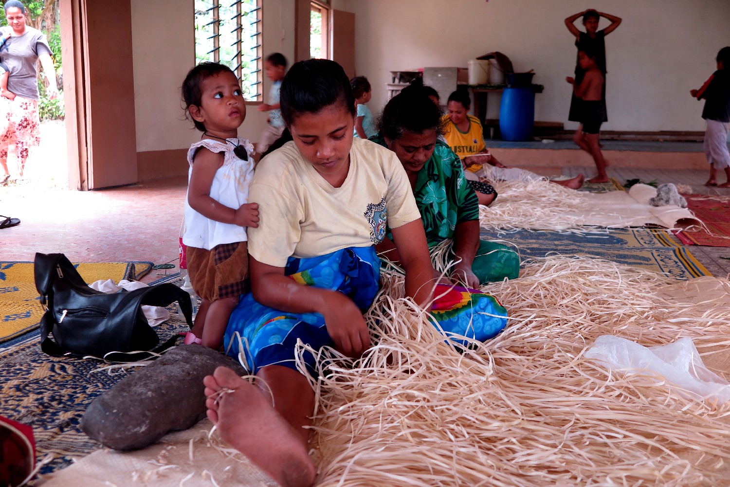 Wir fanden in den Tagen auf Niuatoputapu immer wieder Kontakt zu den Leuten und sahen, wie einfach sie hier leben. Jede Familie lebt eigentlich nur von dem, was sie von der Natur nehmen können. Um jede Hütte laufen ein paar Schweine und Hühner herum und zwischen den Palmen werden die ein oder anderen Nutzpflanzen gepflegt. Der einzige Exportartikel sind besonders feine Matten, die aus den Fasern der Pandanuspflanze gewonnen werden. Wir lernen, wie mühevoll die Bearbeitungsabläufe sind und sehen, wie die Frauen im Dorf die Matten weben. Wir wurden gebeten, einige Säcke mit dem wertvollen Rohstoff (die Pandanusfaser von hier zählt zu den besten) zur Nachbarinsel Vava’u mitzunehmen, da es leider keinen regelmäßigen Fährverkehr gibt. Die 800 Leute hier leben wirklich ein sehr abgeschiedenes Leben ohne elektrischen Strom, ohne Internetzugang und ohne normales Telefon, da die Landleitungen beim Tsunami zerstört wurden. Heute haben sie Mobiltelefone, aber es gibt kein Fax. Die Bank ist in einem Behelfscontainer untergebracht. Wir können nur Dollar tauschen, die Kreditkartennutzung fällt ohne Internet natürlich für Jahre aus.