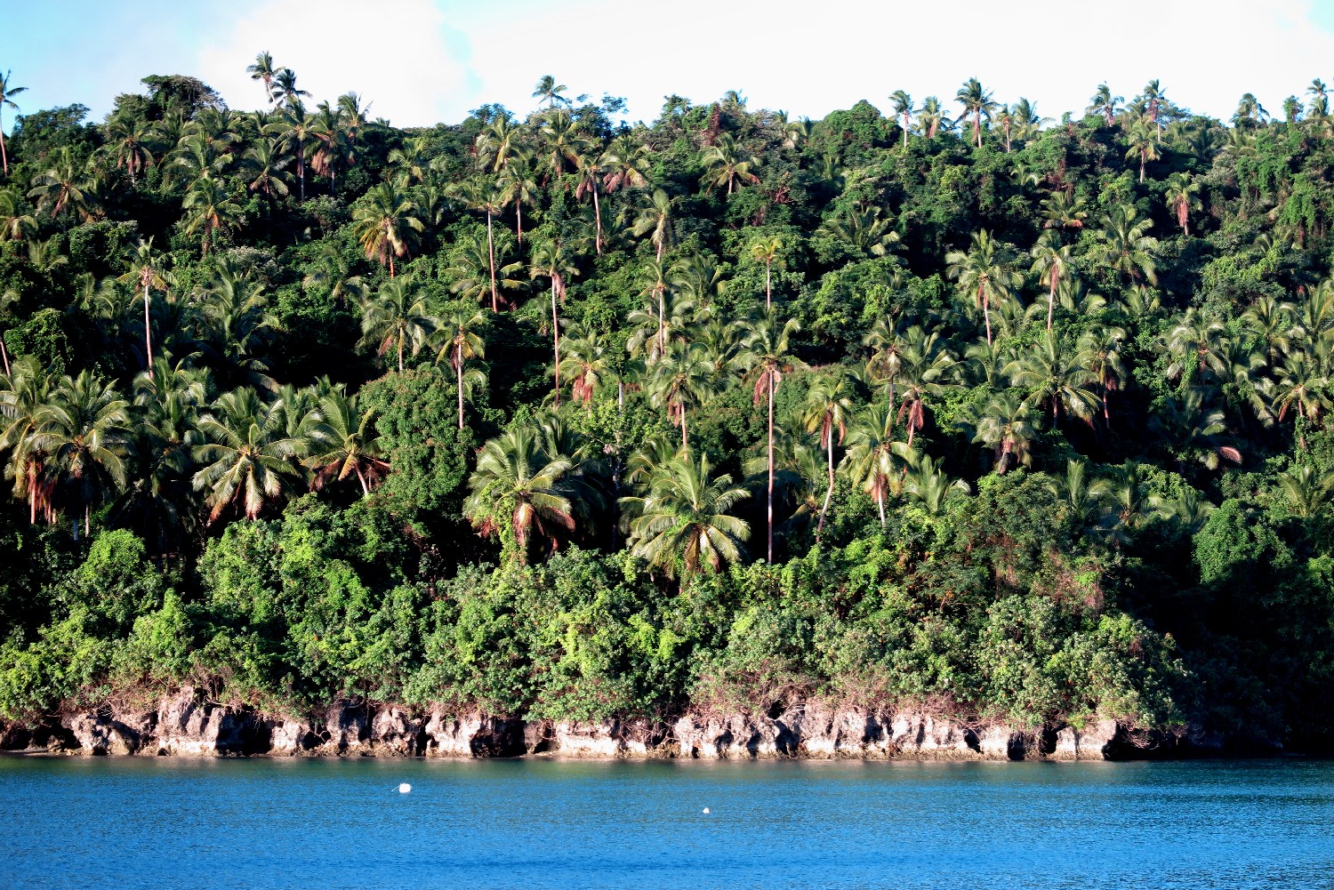 Wir testeten an Bord eine seltsame Pflanze, die wir von Sia aus dem Dorf bekommen haben. Die Blätter der Taropflanze. Wir haben sie gekocht wie Spinat und mit Kokosmilch und es schmeckte total lecker. Aber nach dem dritten Löffel schauten Annette und ich uns an und fragten uns, schmerzt das bei dir auch unter der Zunge? Also, so was hatte ich noch nicht erlebt. Sia meinte wir sollten das kochen und kochen und kochen. Aber Annette meinte, es war nach ein paar Minuten schon durch. Vielleicht hätten wir das Wasser abgießen sollen? Keine Ahnung. Mir wurde es unheimlich, aber Annette ist da tapferer als ich und hat sich noch einen zweiten Teller genommen. Man stelle sich das vor: Du isst ein Gemüse und nach ein paar Sekunden spürst du einen leichten Schmerz unter der Zunge wie eine Verbrennung, der erst nach längerer Zeit wieder weg ist. Annette spürte es noch am nächsten Tag unter der Zunge. Inzwischen wissen wir, dass die Blätter tatsächlich erst einmal eine Viertelstunde gekocht werden müssen, damit die das Brennen verursachende Flüssigkeit austritt. Das Wasser wird dann weggegossen und die Blätter mit Kokosmilch, Knoblauch und Zwiebeln nochmals kurz gedünstet.