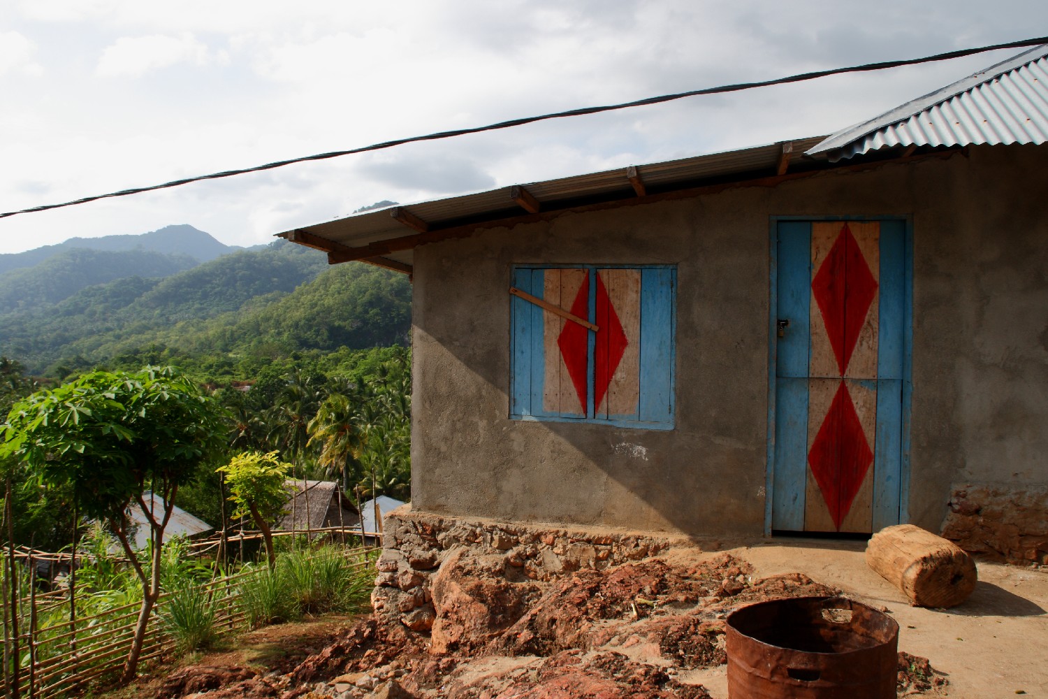 Wir ankern vor dem kleinen Ort Hila, setzen über und erkunden das Dorf. Es ist diesmal ein christlicher Ort, was schon die alles überlagernde Kirche zeigt. 9% der Bevölkerung Indonesiens sind Christen. Die Bewohner begrüßen uns sehr freundlich, aber die Verständigung ist noch schwieriger als in Tual, da niemand Englisch spricht, nicht einmal einen Brocken. Am zweiten Tag wird Jamie zur Anke-Sophie gerudert. Er erklärt uns in sehr gebrochenem Englisch, dass er Polizist sei, vom „indonesischen FBI“ auf Terroristenjagd ausgebildet, und hier für ein Jahr seinen Dienst leiste. Wir sind nicht wirklich enttäuscht, dass nicht die 20 indonesischen Formulare ihn interessieren, sondern dass wir und das Boot im Mittelpunkt stehen. Als wir uns als Deutsche zu erkennen geben, werden – wie so oft – stolz die Namen deutscher Fußballer heruntergebetet, und das zu uns, die wir mit Fußball nichts anfangen können. Mit unserem kleinen Bilderbuch „point it, traveller’s language kit“ erklären wir, dass wir gerne Gemüse und Früchte kaufen würden. Er begleitet uns an Land und führt uns zu einzelnen Familien, wo wir mit viel Spaß auf allen Seiten Auberginen und Papayas kaufen. Es spricht sich im Ort herum, dass es interessant bei uns an Bord ist und so bekommen wir den Nachmittag über immer neuen Besuch. Ach, könnten wir uns mit den Leuten wie in Vanuatu auf Englisch unterhalten…