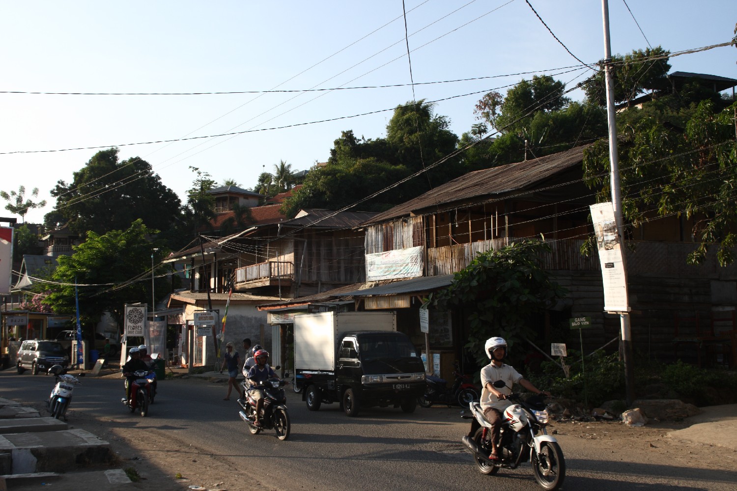Am Tage streifen wir durch den Ort und glauben in eine andere Welt versetzt zu sein. Überall sehen wir mehr oder weniger rot verbrannte ehemals weißhäutige Touristen. Für uns eine in den ersten Wochen unbekannte Spezies Mensch. Wir kaufen neuen Proviant und organisieren für mich drei Tauchgänge zwischen den Komodo-Inseln.