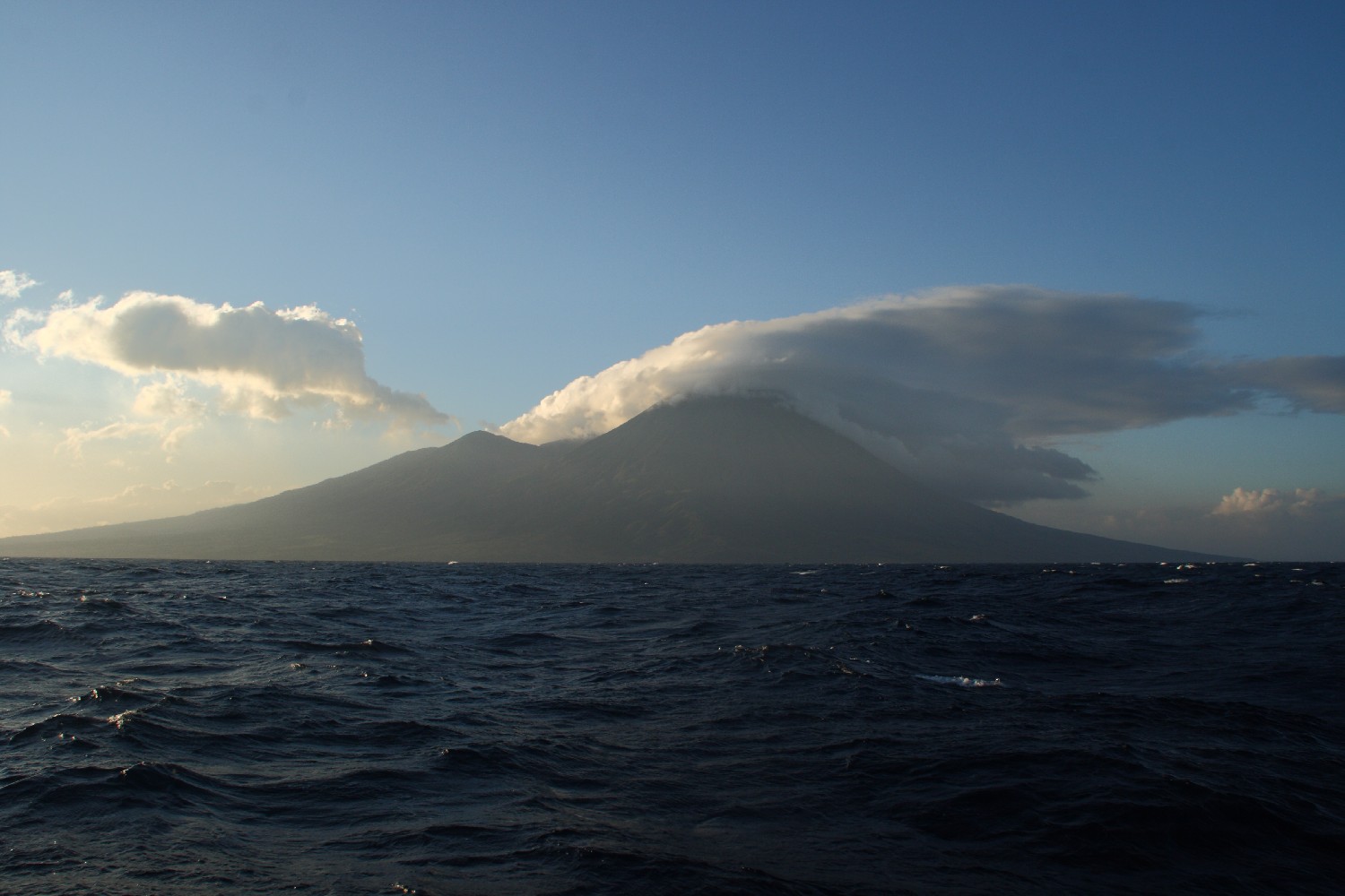 Wir segeln die Nordküste von Flores entlang von Ost nach West.  Wir verfolgen die sich ständig wechselnden Ansichten der Hügel- und Bergketten, welche die langgestreckte Insel durchziehen. Leider wird der SE-Passat durch die Insel abgedeckt, sodass die Winde nur sehr schwach sind. Einerseits freuen wir uns über die ruhige See, ein vollkommen ungewohntes Segeln, andererseits fehlt uns der Wind als Vortriebskraft. Lediglich die thermischen Winde, tags der Seewind und nachts der Landwind, ermöglichen uns für ein paar Stunden angenehmes Segeln.  So brauchen wir für die 306 sm insgesamt 81 Stunden, was einer Durchschnittsgeschwindigkeit von 3,7 kn entspricht, und leider müssen wir 25 Stunden lang die Maschine laufen lassen. Sonst lag unser Durchschnitt oft über 6 kn.
