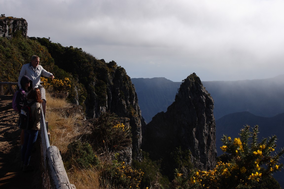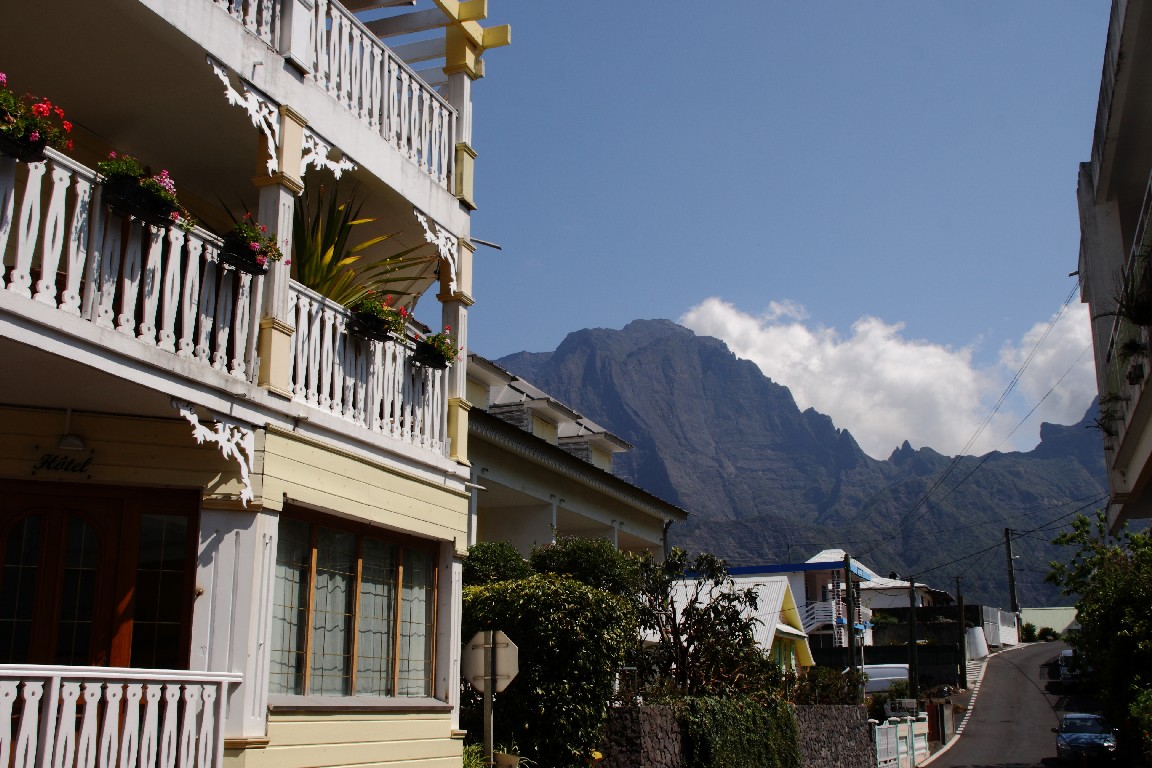 Unser letzter Ausflug bringt uns in den „Cirque de Cilaos“ im gebirgigen Innern von Réunion. Der Weg dorthin führt über eine kleine Gebirgsstraße mit mehr als 400 Kurven in das kolossale Amphitheater. Cilaos wurde wie alle Cirques zuerst von geflohenen Sklaven besiedelt, die hier in der Abgeschiedenheit Schutz suchten. Noch heute unterscheidet sich das Dorf von den mondänen Ortschaften an der Küste. Wir spazieren durch die Straßen und bewundern besonders die alten Häuser und die Blicke auf den Kraterrand, der sich durch die Straßen in allen Richtungen zeigt. Cilaos liegt auf 1.200 m auf dem Boden des Kraters und ist allseitig von gewaltigen Felswänden umgeben. Der „Piton des Neiges“ steht beinahe 2.000 m über uns und zieht unsere Blicke magisch an.