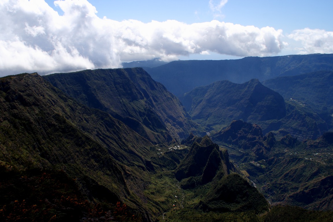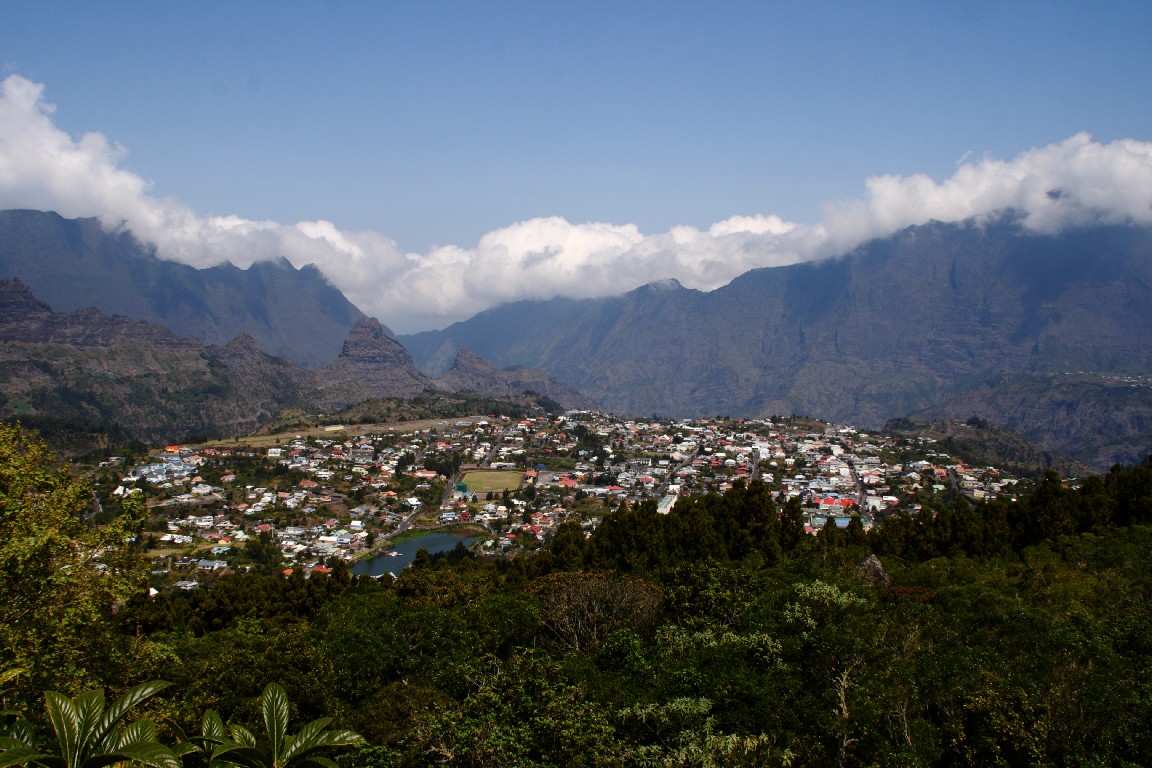 „Cilaos“ am Kratergrund umgeben von Felswänden