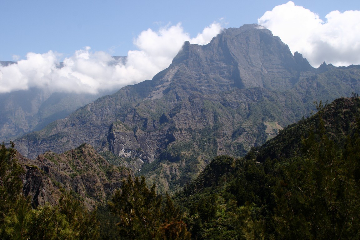 Blick vom “ Le Maido“ zum Kraterrand “Le Grand Bord“ und dem „Le Grand Bénaire“(rechts) und „Piton des Neiges“(links)