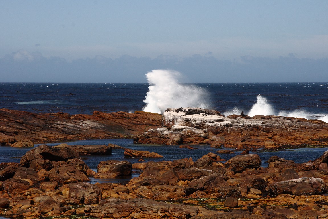 Am 9. Januar kommt Andreas aus Leipzig für zwei Wochen zu uns, um uns zu besuchen und mit uns durch die Kapregion zu reisen. Die erste Tour unternehmen wir zum Cape Point, das am Kap der Guten Hoffnung liegt. Es ist ein sehr windiger Tag und so stehen wir sturmgebeutelt am Leuchtturm, blicken nach Süden in Richtung Antarktis und entlang der ausgesetzten Klippen. Wir umfahren die Halbinsel mit dem Auto entlang dem Chapman’s Peak Drive, eine kleine in den Fels getriebene Straße entlang der ausgesetzten Küste und hinein in die Buchten wie Hout Bay. Wir beenden die Tour einer Empfehlung Stefans folgend im „Codfather“, dem besten Fischrestaurant der Gegend. Man sucht sich Sushi und Fisch an der Theke aus, der für uns direkt zubereitet wird.