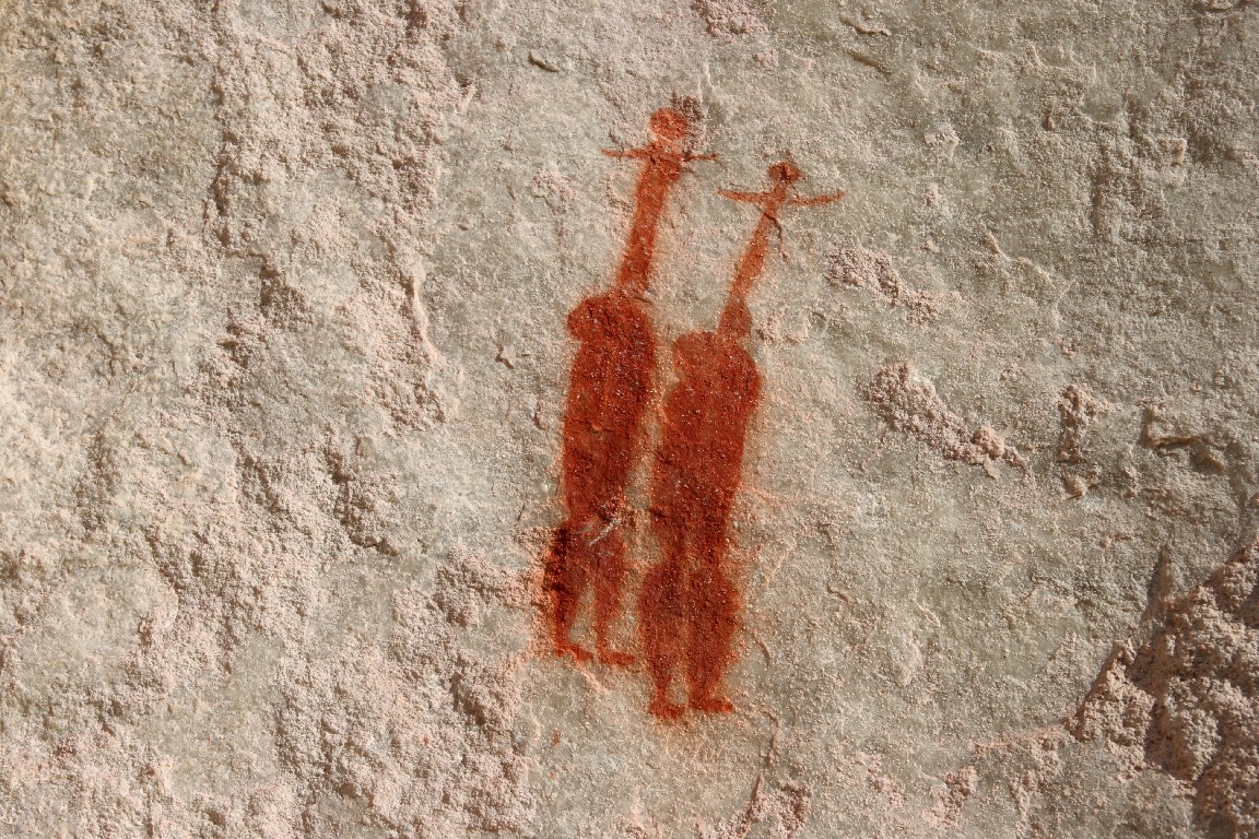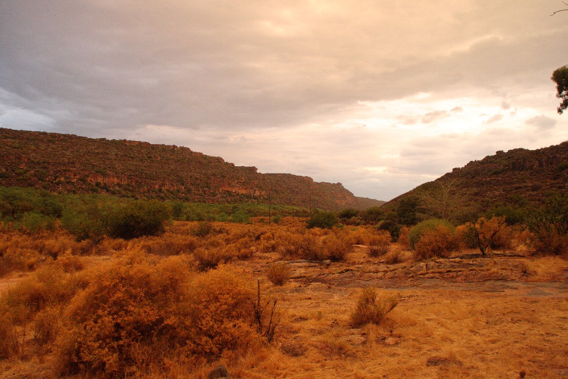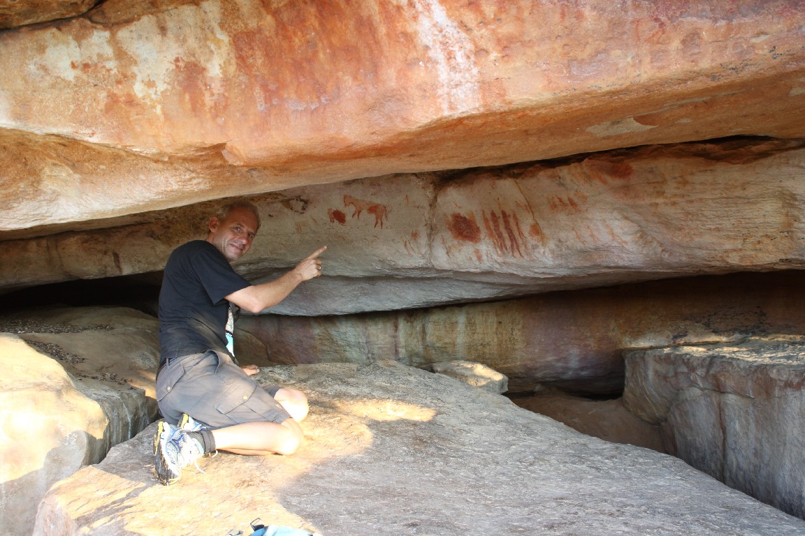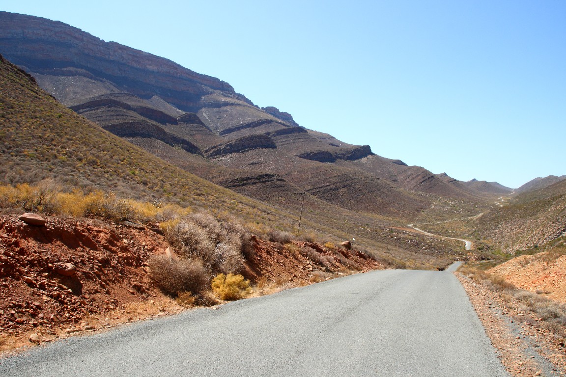 Wir unternehmen eine viertägige Reise zunächst entlang der Westküste, wo wir Langebaan und Paternoster am Cape Columbine besuchen. Am nächsten Tag fahren wir nach Clanwilliam, um von dort aus zwei Tage in „Cederberg Wilderness“, einer weiten wüstenartigen Bergregion zu verbringen. Zunächst geht es über den Sevilla Trail zu neun Felsüberhängen, unter denen wunderbar erhaltene Felszeichnungen der San zu finden sind. Die ehemaligen Bewohner Südafrikas, die Buschmänner, zeichneten und überliefern dadurch Szenen aus ihrem Leben, sehr spannend für uns, diese nun viele hundert Jahre später entlang des Pfades wiederzufinden. Wir sind die einzigen Gäste und haben eine riesige alte einfache Lodge für uns allein, tagsüber glüht die Wüste mit bis zu 40°, nachts kühlt es kaum auf 32° ab, wir sitzen als Selbstversorger lange auf unserer Terrasse unter Akazien, und genießen die von Andreas zubereiteten Spaghetti und den südafrikanischen Wein. Am zweiten Tag fahren wir über 120 km mit unserem Kleinstwagen auf Sand- und Steinpisten durch diese gewaltige Landschaft. Paul, unser Segelnachbar, hatte uns diese Tour empfohlen und wir folgen seinem Rat, viel Wasser mitzunehmen, denn es wird wieder sehr heiß. Wir überqueren den Cederbergpass und machen im Weingut Cederberg in Sanddrif Halt, eine neue Herausforderung, eine Weinprobe bei 40°… Auf dem Rückweg kaufen wir in Wellington einige Kisten von unserem Lieblingswein, den Pinotage von Diemersfontain, als Schiffsproviant für die nächsten Wochen auf See, allerdings trinken wir ja keinen Wein auf den Passagen.