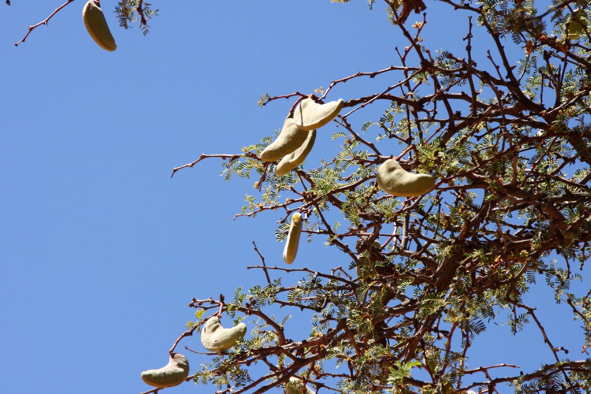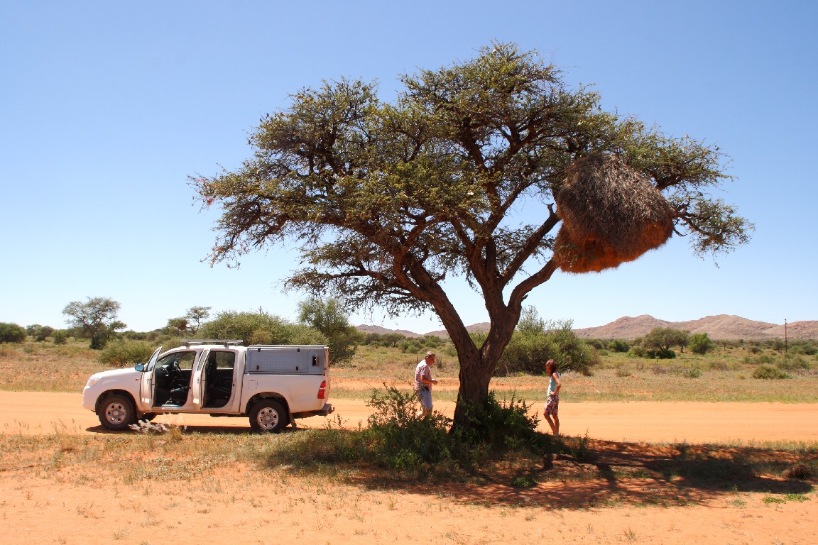 Kameldornbaum, eine Akazienart, hier mit Vogelnest und Wüstenliebhabern