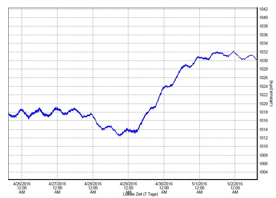 Barograph vom 24.04 bis zum 02.05.2016 - Nach dem Tief fahren wir in das Hoch