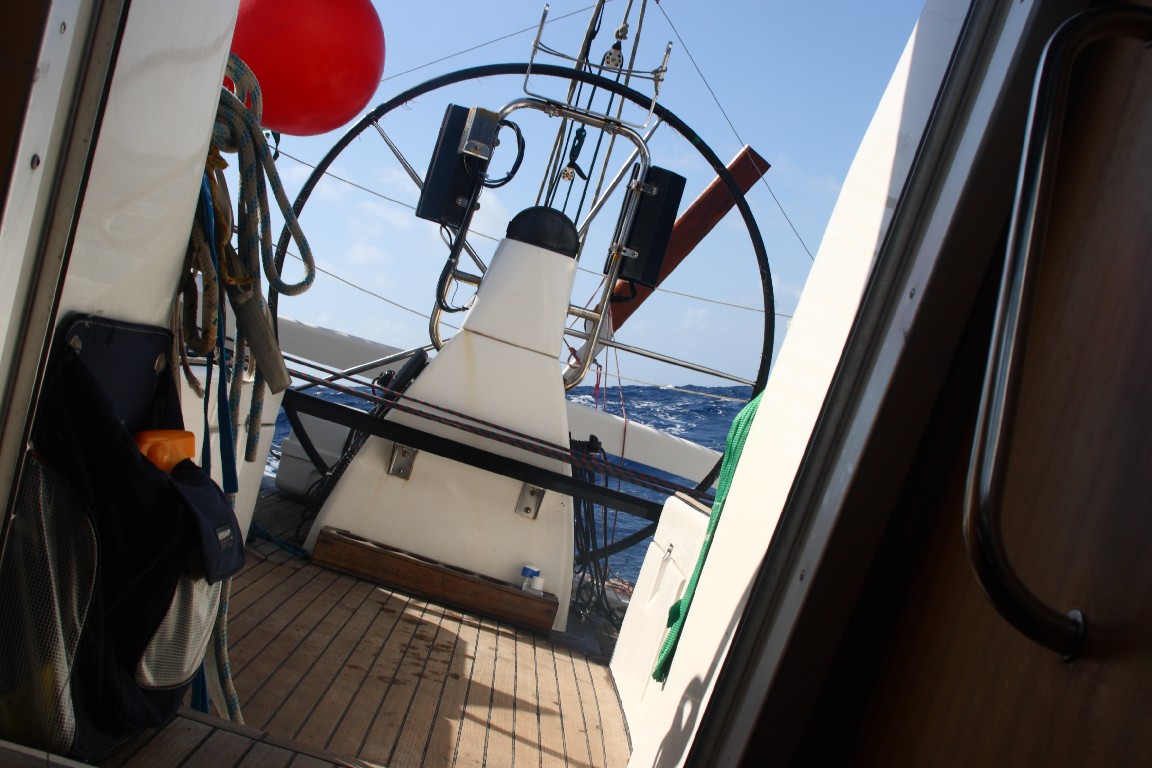 Als wir die gebrochenen Schrauben an den Püttings entdeckten, da ist uns wirklich der Schrecken in alle Glieder gefahren. Aber ansonsten nehmen wir die laufenden Schäden am Boot gelassener hin als zu Beginn. Es gibt beim Blauwassersegeln eigentlich nichts, was nicht kaputt geht. Als das Pendelruder der Windfahne brach, war der Gedanke: Gut, dann segeln wir doch nach Mindelo, um ein Provisorium zu bauen, dann können wir auch frisches Gemüse und Obst einkaufen. Wir haben mit vielen Seglern darüber gesprochen, die alle bestätigten, dass das Salzwasser und die Bewegungen alles am Schiff zerstören, selbst V4-Stahl rostet unter den tropischen Bedingungen. Insgesamt helfen nur genügend Ersatzteile, Gedankenspiele im Vorhinein, was tue ich wenn, und etwas Improvisationstalent.  Die Gelassenheit ist größer geworden, auch wenn ich immer noch wie Rumpelstilzchen an Bord herumspringe, wenn etwas kaputt geht oder ein Manöver misslingt.