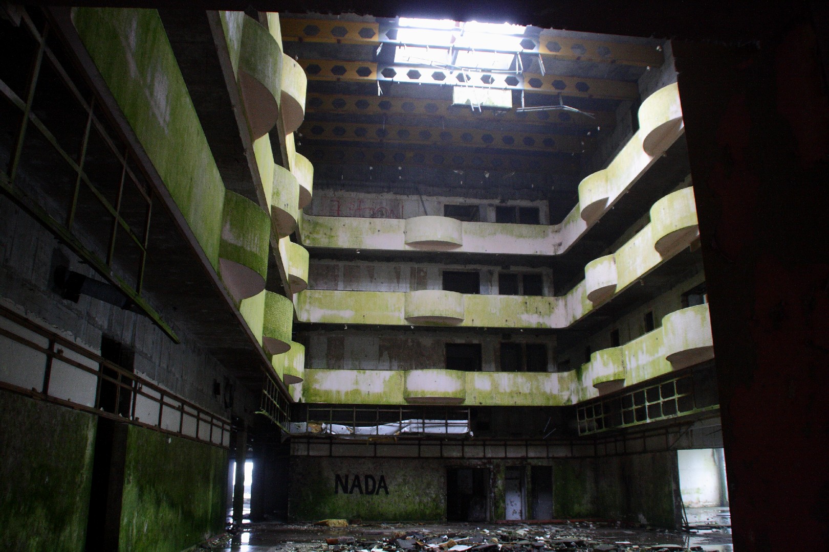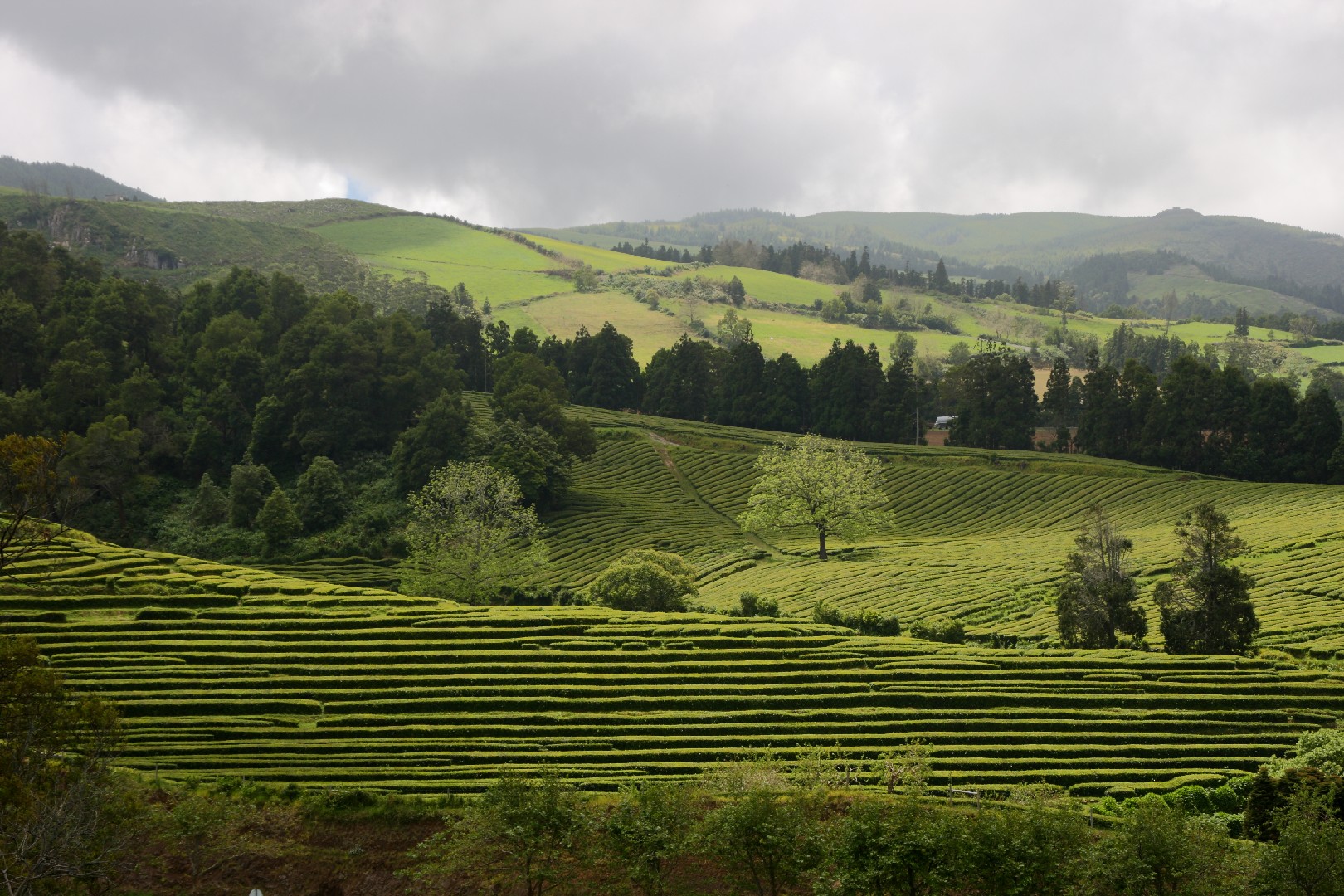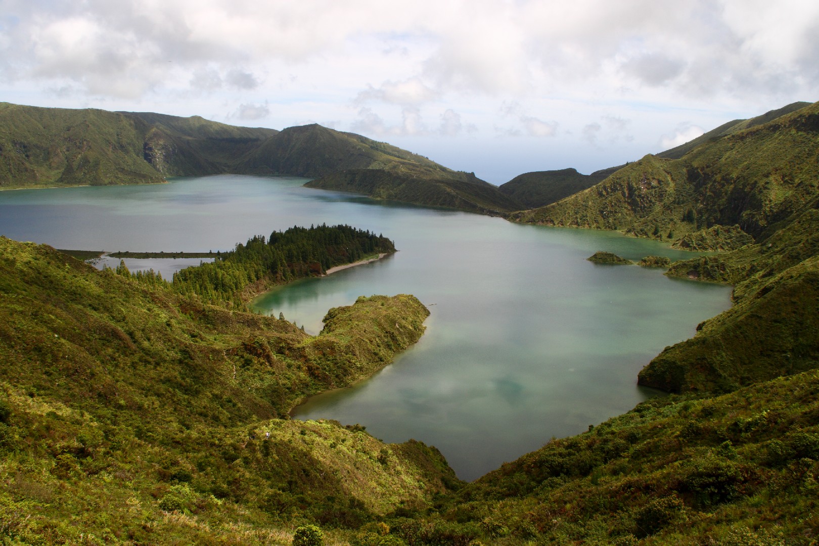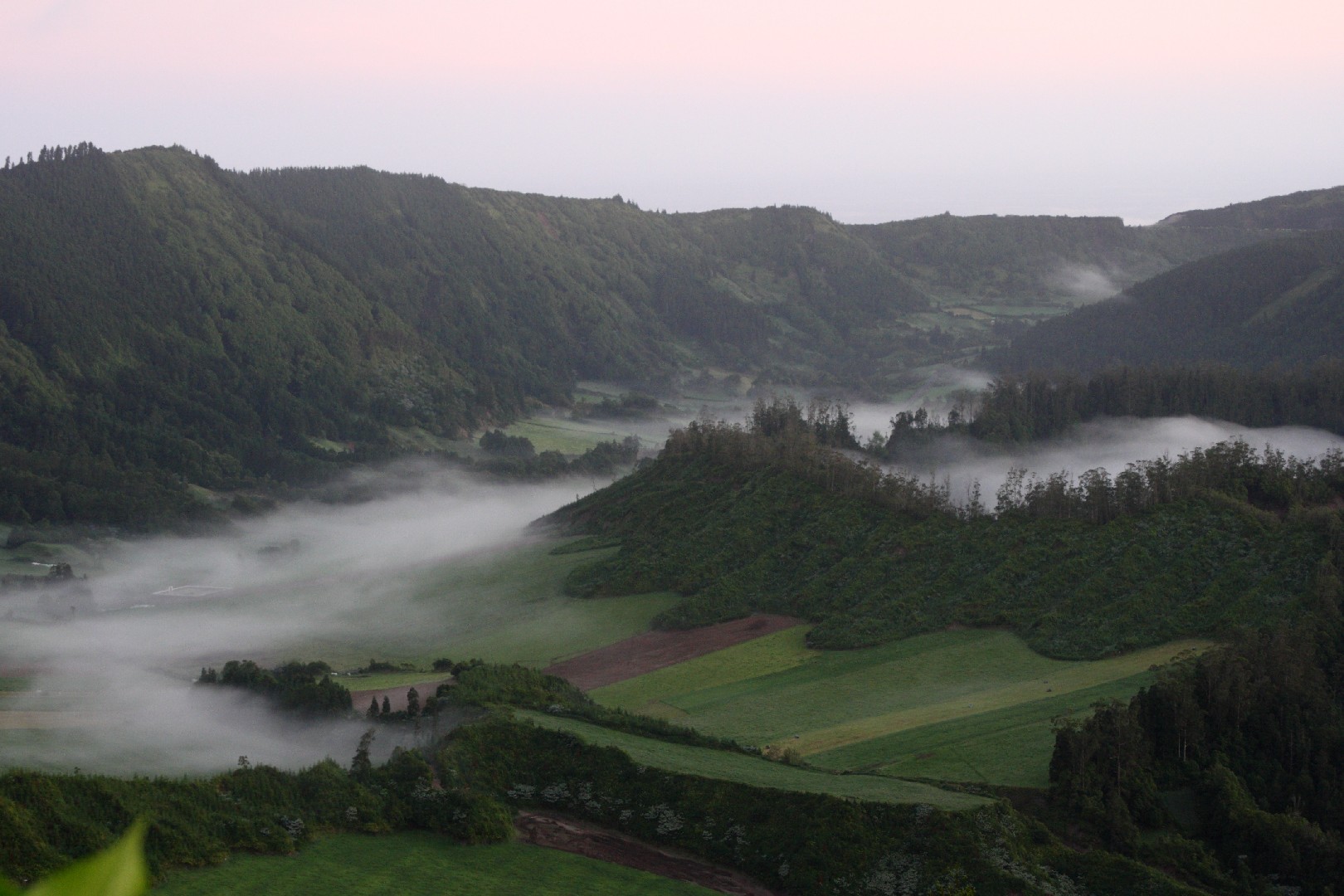 Wir nähern uns dem ersten Höhepunkt, Sete Cidades, das am Rand der zwei Vulkanseen Lagoa Azul und Lagoa Verde liegt. Die riesige Caldeira mit einem Umfang von 12 km ist die größte der Azoren. Wir bewundern die königliche Aussicht von Vista do Rei nicht nur dieses Mal, sondern werden diesen Punkt immer wieder während unseres dreiwöchigen Inselaufenthalts ansteuern. Die Wolken verleihen der Kraterlandschaft und den am Grund liegenden Seen etwas Mystisches. Gespenstisch mutet auch die gewaltige Fehlinvestition des hier oben in der Bergwelt 1984 von den Franzosen errichteten 5*-Hotels mit 170 Zimmern an, das nach einem Jahr aufgegeben wurde und nun seit 30 Jahren als Ruine ein unrühmliches Ende und für uns gruselige Ein- und Ausblicke zeigt.