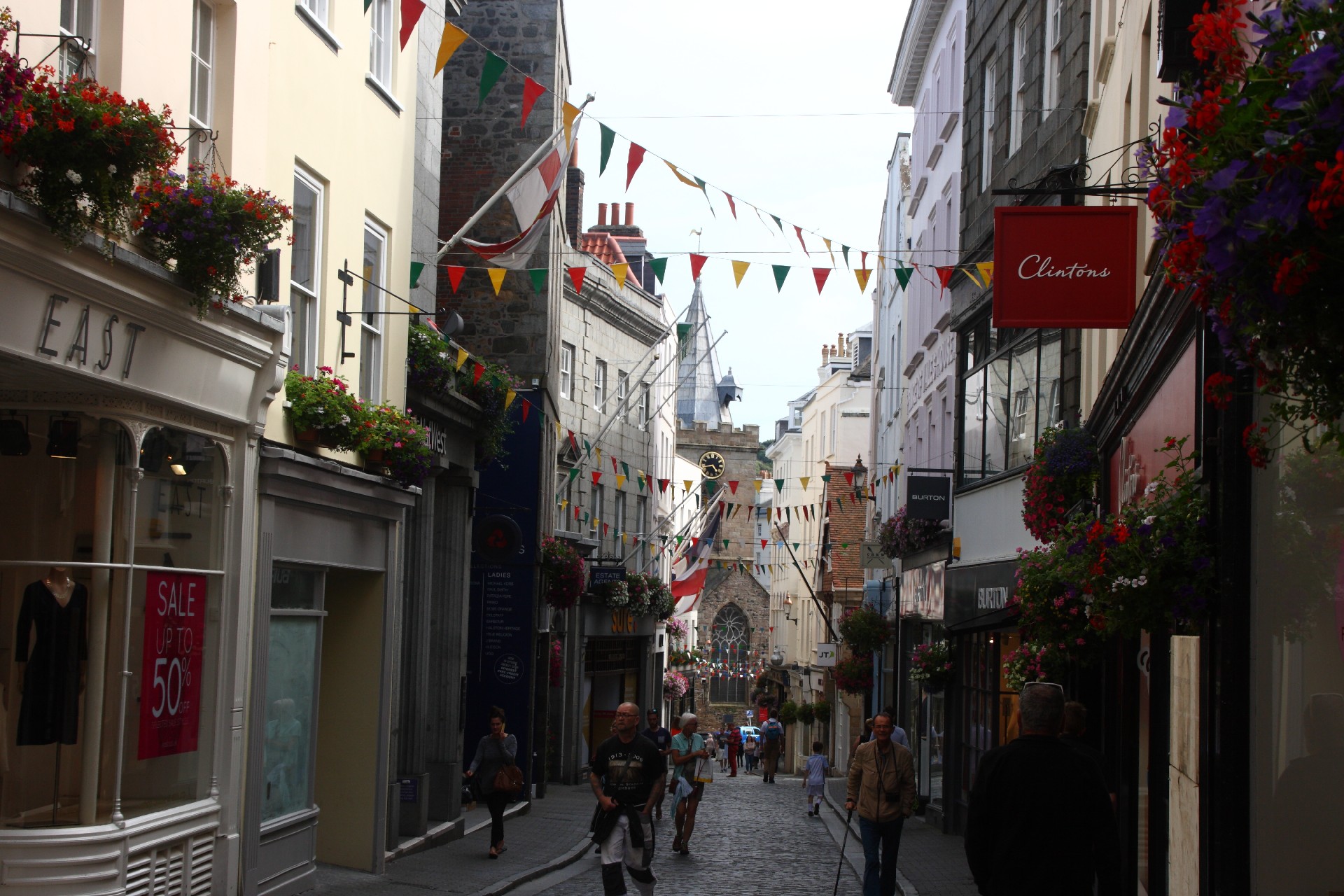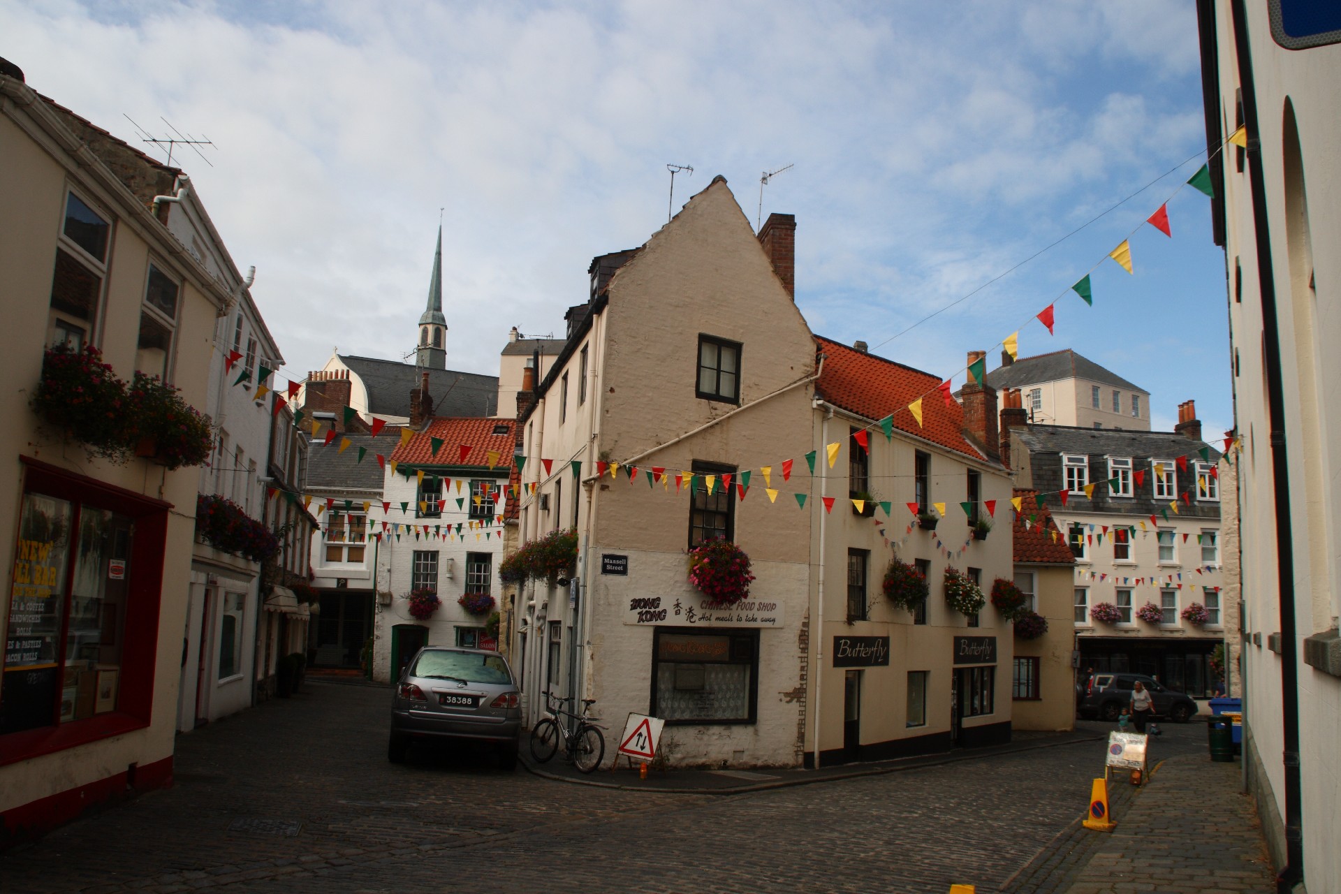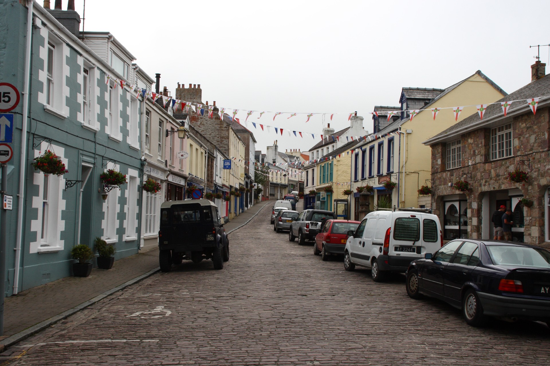 Wir spazieren durch St. Peter Port, das auf uns wirkt wie eine kulissenhafte Museumsstadt. Die alten Häuser sind fast alle gut saniert, aber leider teilweise mit hässlichen Neubauten durchsetzt. Besonders fallen die vielen teuren Autos wie Rolls-Royce und Jaguar auf.
