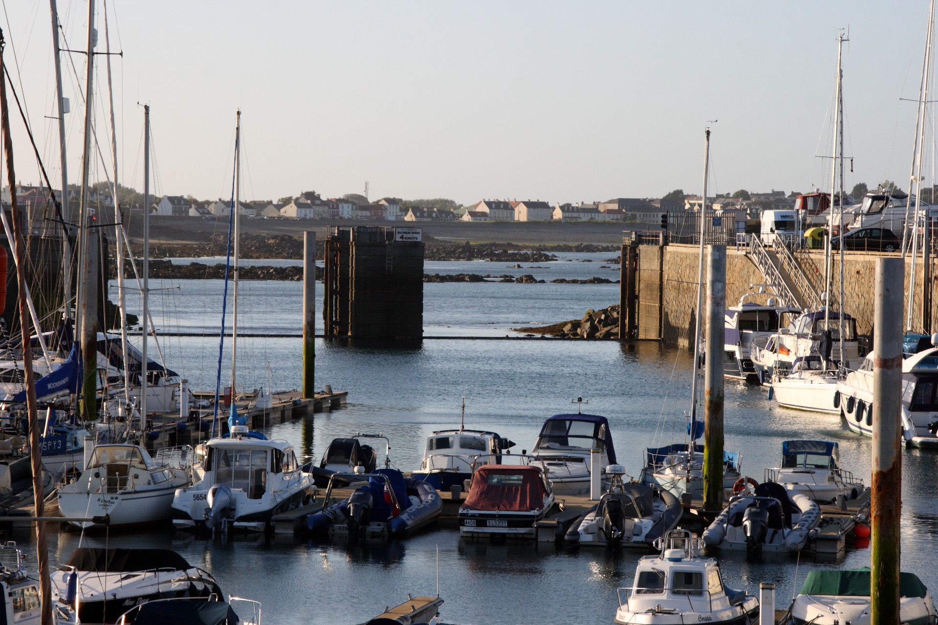 Die Hafeneinfahrt von der Marina Queen Elisabeth II in St. Peter Port bei Ebbe