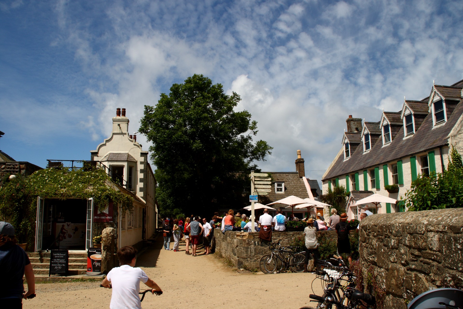 Über das Wochenende findet auf Sark ein Folk Festival statt. Auf der Insel sind Hunderte von Besuchern, die sich an mehreren Stellen auf der Insel in Zeltlagern eingerichtet haben. Wir besuchen die wunderschönen Gärten von La Seigneurie, dem Sitz des Inseloberhauptes, und wandern über die kleine autofreie Insel, die uns nicht nur deshalb an Hiddensee erinnert.Sark 003