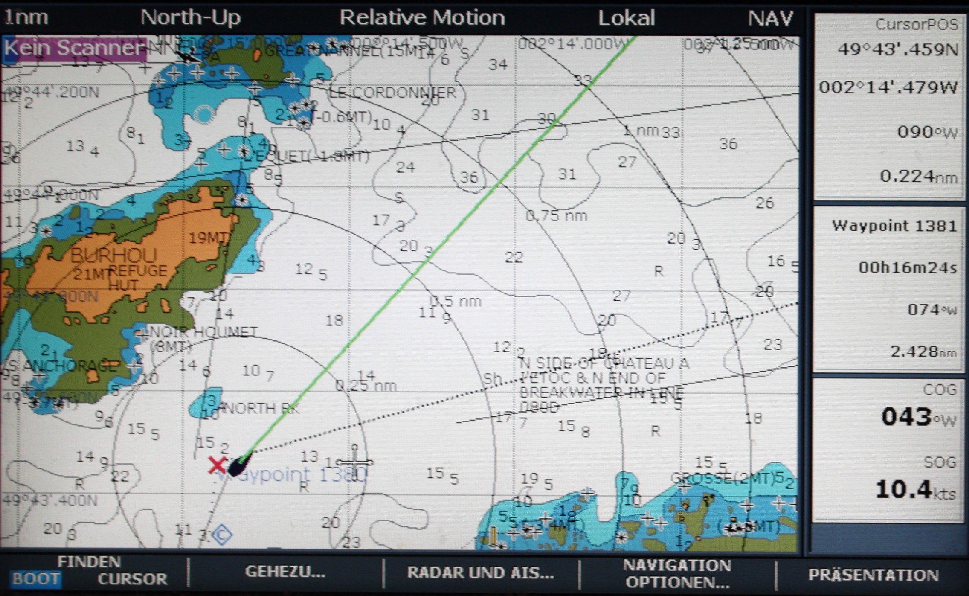Am Sonntag, dem 2. Juli, endlich ein lang ersehnter Sonnentag, segeln wir nach Alderney. Wir verlassen unsere Bucht entsprechend der nautischen Empfehlungen 2 ½ Stunden vor Hochwasser, um die 20 Seemeilen entfernte Bucht Braye Harbour vor Alderney 1 ½ Stunden nach Hochwasser zu erreichen. Die Strömung in The Swinge, die Meerenge zwischen Alderney und Burhou, soll bis 3 Stunden nach Hochwasser in unsere Richtung, also Nordost strömen. Die Strömung kann ähnlich wie im Alderney Race über 6 Knoten betragen und es gibt zahlreiche Overfalls, wie die stehenden Wellen genannt werden. Nicht umsonst wird das Seegebiet der Kanalinseln als das schwierigste ganz Europas bezeichnet. Wir sind mal wieder zu schnell, obwohl wir nur die Genua gesetzt haben und auf das Großsegel verzichteten. Es wehen in Böen 22 Knoten, also Windstärke 6, vor der auch der Wetterbericht warnt. Dadurch kommen wir eine Stunde früher in The Swinge an, als geplant und staunen über die aufgewühlte See und unsere eigene Geschwindigkeit über Grund, die oft über 10 Knoten beträgt. Wir sind sehr froh, als wir hinter dem gewaltigen Bauwerk des langen Wellenbrechers gut geschützt an einer Mooringtonne liegen und unser Abendessen bereiten. Natürlich nicht ohne den notwendigen „Anleger“ mit dem Dankspruch an Neptun.Alderney 021 Alderney 034