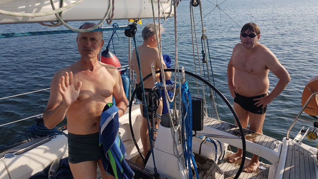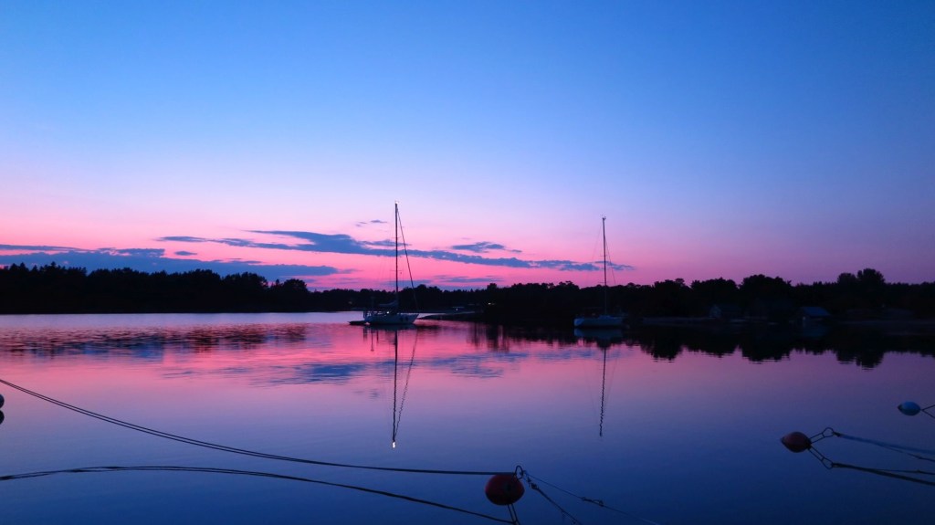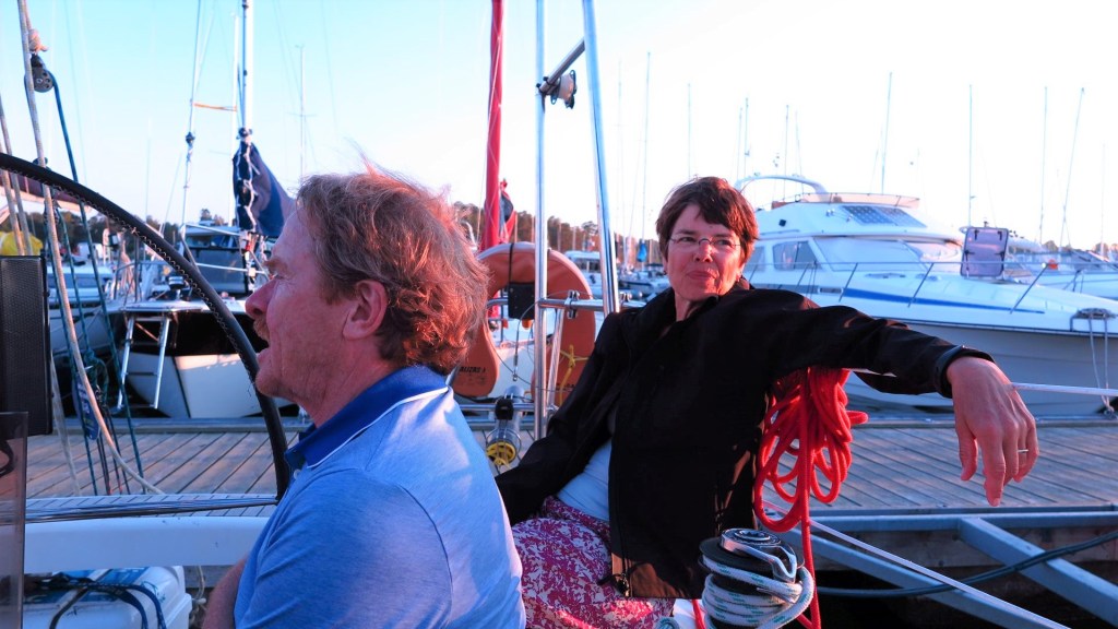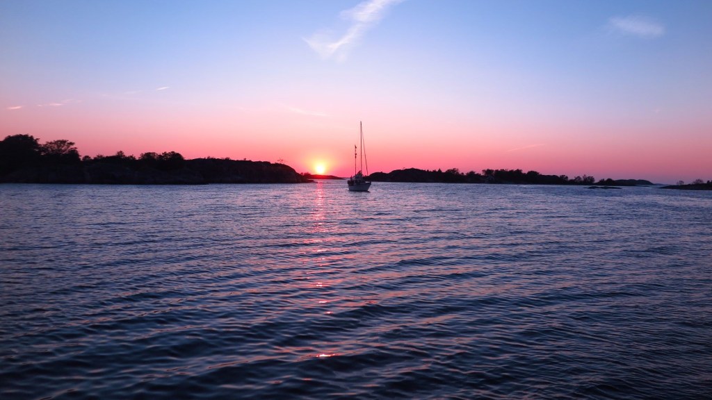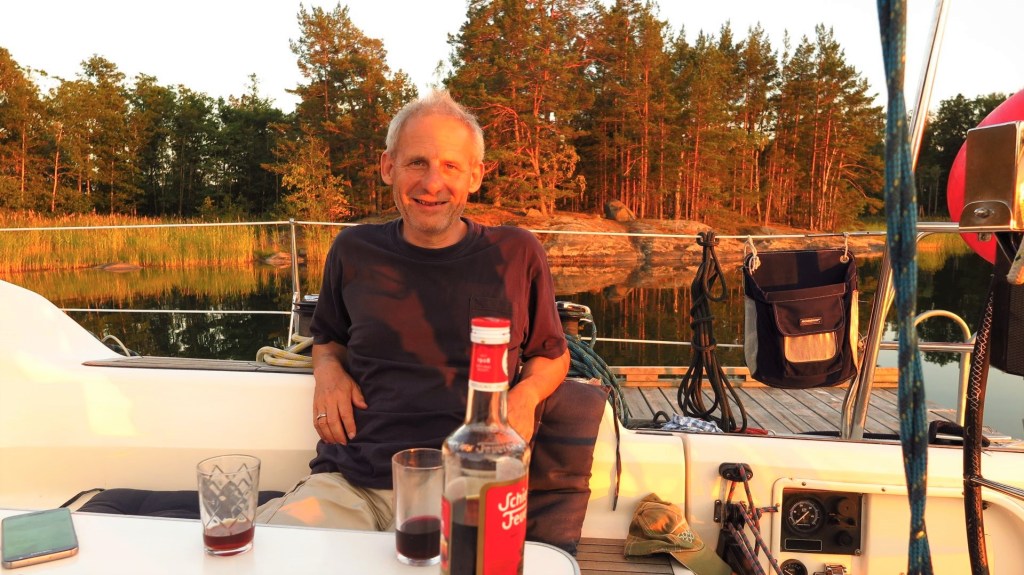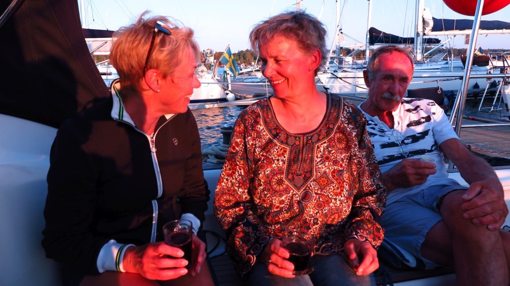 Göran kommt mit Dominik an Bord. Göran hatten wir zuletzt auf Borkum auf unserer Rückreise der Weltumsegelung gesehen. Er hatte dort vor zwei Jahren den Empfang durch die DGzRS organisiert, wo wir mit Wasserfontänen begrüßt worden waren, immer noch ein ergreifender Moment, wenn wir daran zurückdenken. Wir verlassen Nynäshamn und segeln wieder in Buchten bei Oxelösund, dann Håskö, Spårö bis nach Figeholm.