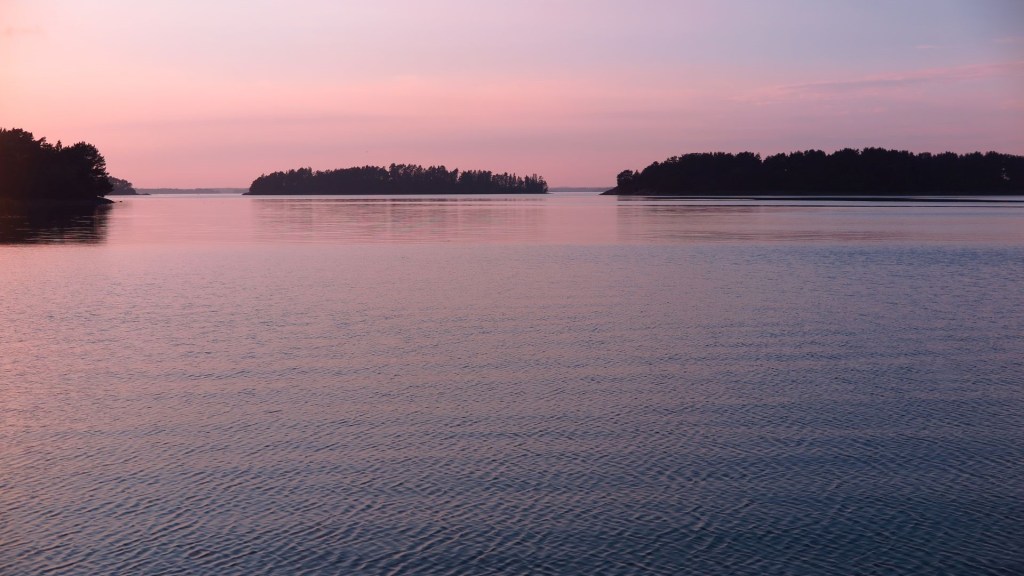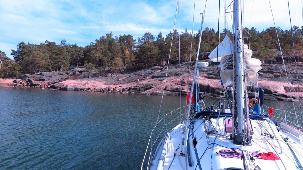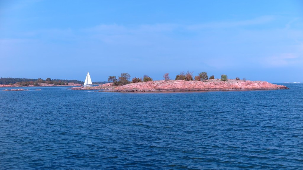 Nach dem Einkaufen verlässt die neue Crew Stockholm, wir wollen dem Trubel entfliehen. Die Wasserstraßen um Stockholm herum sind so voller Boote, dass wir froh sind, als wir gegen Abend in einer Bucht östlich von Sandkullen auf Norra Ljusterö Ruhe finden. Bei Högmarsö wird das Angeln ausprobiert. Leider sind die Gewässer so überfischt, dass lediglich nur ein einziges Mal ein kleiner Fisch anbeißt. Wir genießen das Segeln bei Sonnenschein und leichten östlichen Winden und ankern viel in Buchten, wie in Bofjärden an der Nordostecke von Väddö. Wir können Eckerö anliegen und machen in Käringsund fest. Wir sind auf den fantastischen Åland-Inseln angekommen. Wir lieben diesen Archipel am südlichen Eingang in den Bottnischen Meerbusen zwischen Schweden und Finnland. Politisch gehören die 6.757 Inseln zu Finnland; die knapp 30.000 Einwohner sprechen aber Schwedisch. Die Inseln wurden während der letzten Eiszeit unter Wasser gedrückt und tauchen immer noch weitere 7 mm pro Jahr aus dem Meer auf.