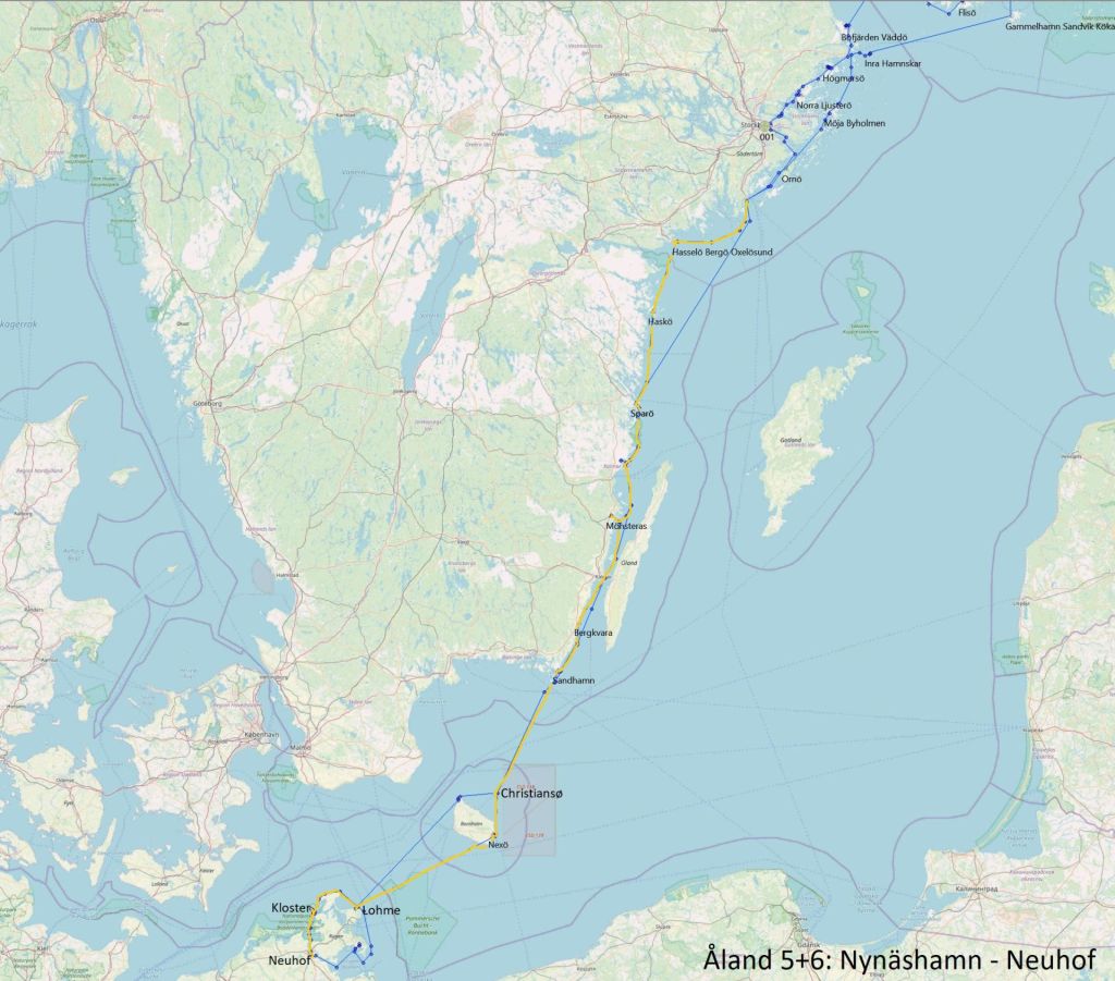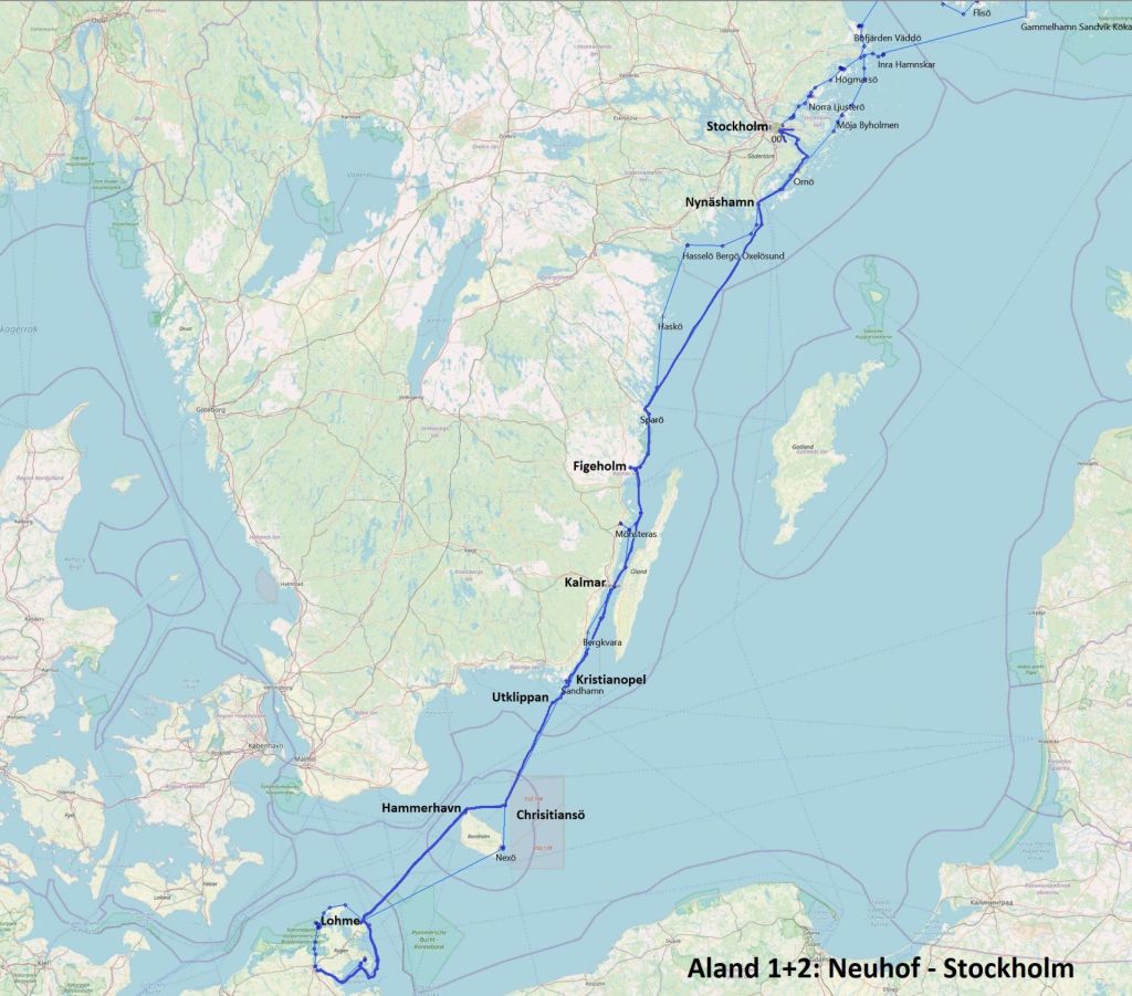 Den Törn zu den Ålands unternehmen wir bei bestem Wetter über einen Zeitraum von sechs Wochen mit unterschiedlichen Crews. Paul segelt die erste Etappe (Woche 1 und 2) mit Krissi, Matthis und den Kindern Doro und Friedi bis nach Stockholm. Sie nehmen sich zwei Wochen bei moderaten Winden und Sonnenschein. Durch den Greifswalder Bodden mit Stopp in Seedorf geht es über Lohme mit einem langen Schlag bei westlichen Winden bis Hammerhavn. Von dort ist es nur ein Sprung an Hammerodde, dem Nordkap von Bornholm, vorbei bis Christiansø, alles wohlbekannte herrliche Ziele. Nach einem Pausentag geht’s weiter nach Utklippan, dem kleinen Nothafen in der kleinen Inselgruppe vor Schweden, und ab jetzt mit östlichen Winden und nur bei Sonne über Kristianopel bis nach Kolmar. Ab Fiegeholm segelt die Crew dann durch die Schären und bleibt in tollen Ankerbuchten wie bei Spårö, dann über Nynäshamn und Korsholmviken nach Stockholm, wo in Navishamnen zum ersten Mal die Crew wechselt. Annette, Thomas und Kathrin kommen an Bord. Paul bleibt die gesamten sechs Wochen an Bord.