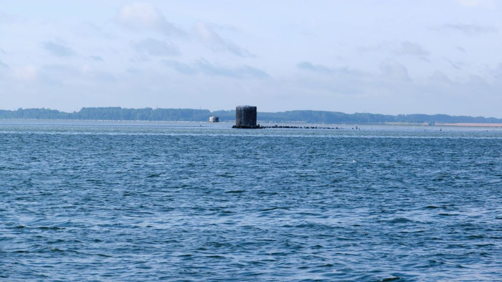 Annette und ich reisen mit der Bahn nach Stralsund und Dorothé kommt mit MacTom und den frischen Lebensmitteln am Samstagvormittag. Das Wetter ist sommerlich, nach anfänglich leichtem Ostwind soll es frischen Wind aus westlichen Richtungen geben, der später auf Ost drehen soll. Alles ist bereits vorbereitet und wir legen direkt nach der Ankunft der beiden ab. Bei leichtem Ostwind segeln wir den Strelasund nach Norden und biegen in die Vierendehlrinne nach Nordosten ab. Zur guten Seemannschafft gehört der Wetterbericht und so hören wir DP07 um 12:45 Uhr, auch wenn wir zuvor auf Windfinder.com die leichten Winde aus Ost bis zum Abend gesehen hatten und dann Schauer in der Nacht angezeigt wurden. Welch eine Überraschung, als wir Herrn Dietzel folgen, wie er mit ernster Stimme von Gewitterböen um 11 Beaufort spricht. Ich bin mir zwar fast sicher, dass dies erst in der Nacht kommen wird, aber der Seewetterbericht nennt leider keine Zeiten. Die Unwetterwarnungen im Radio haben wir leider nicht gehört. Da für die nächsten beiden Tage frischer Westwind angesagt wird, nehmen wir es leicht und bleiben spontan in Barhöft über Nacht. Warum das Risiko eingehen, der Himmel färbt sich zudem schon schwarz, ein Spaziergang entlang des Fahrwassers nach Zingst ist doch auch schön. Wenn nur nicht die Mücken wären. Die haben wir erst in Schweden erwartet, aber nun sind wir schon am ersten Abend total zerstochen, auch wenn abends im Restaurant beim Fischessen neben dem Besteck schon Mückenspray dazu gestellt wird.
