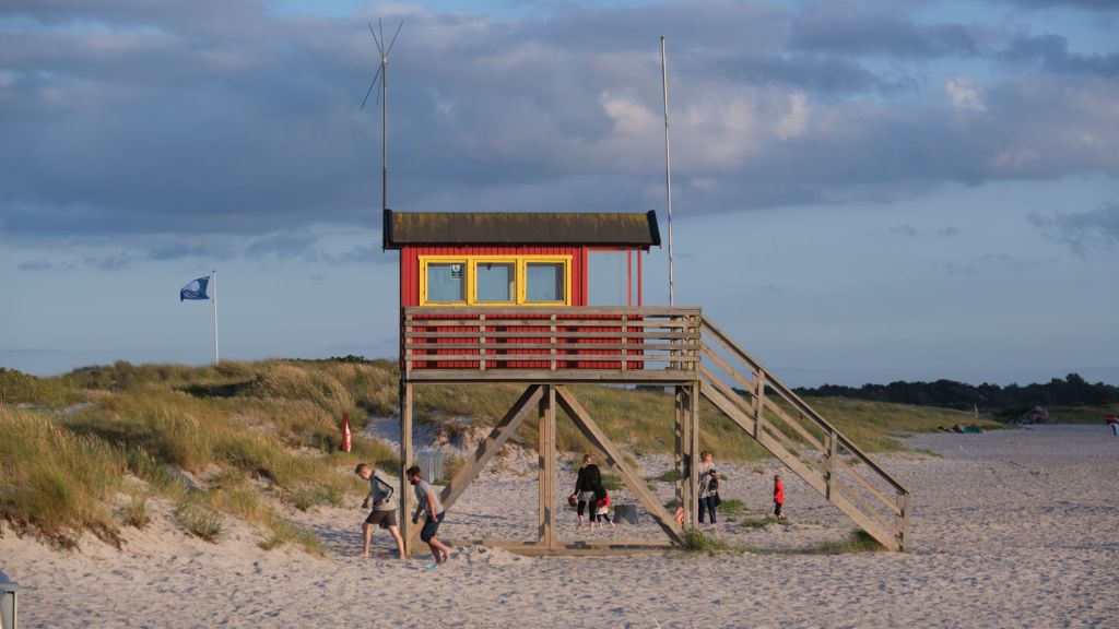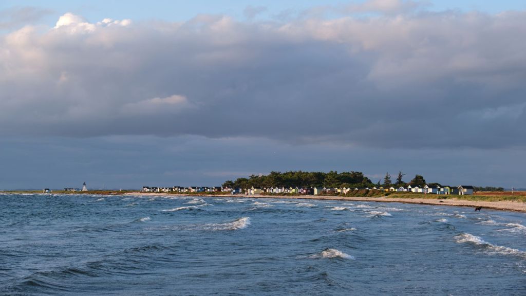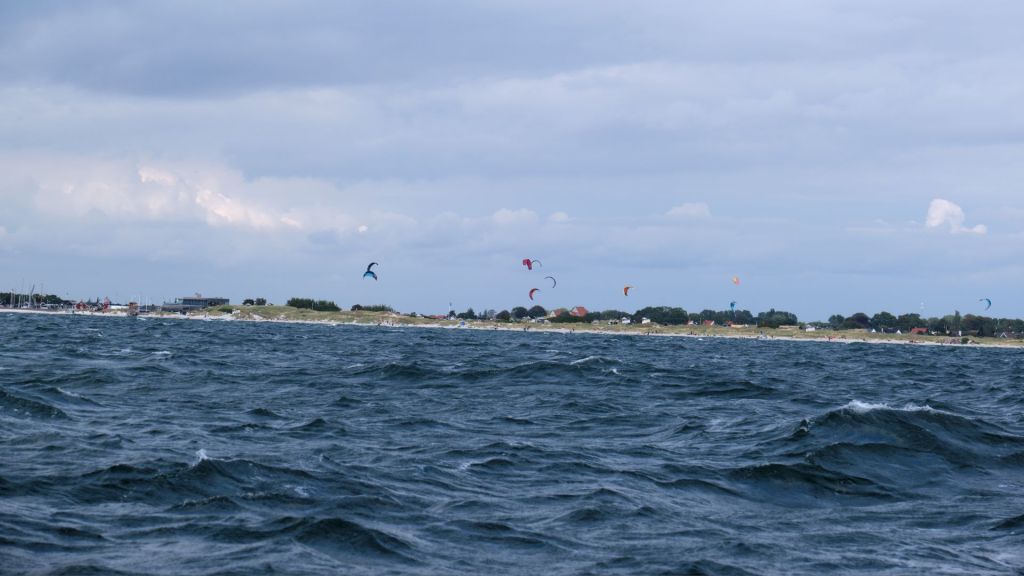 Am nächsten Tag legen wir früh um 8 Uhr ab und segeln bei gutem West einen schönen Schlag bis Skanör an der Südwestecke von Schweden, direkt westlich von Trelleborg. Die 61 sm segeln wir in 9 Stunden, das klingt schon viel besser als das Etmal vom ersten Tag mit 9 sm. Wir sind froh in Schweden zu sein, laufen zum Ort und genießen die bunten Strand-Häuschen entlang des Weges und das schöne Licht in der Abendsonne. Hier waren wir lange nicht mehr, zuletzt 2010, also lange vor unserer Weltumsegelung. Auf dem Wasser beobachten wir das bunte Treiben der Kitesurfer, die beim frischen Wind über das Wasser gleiten.