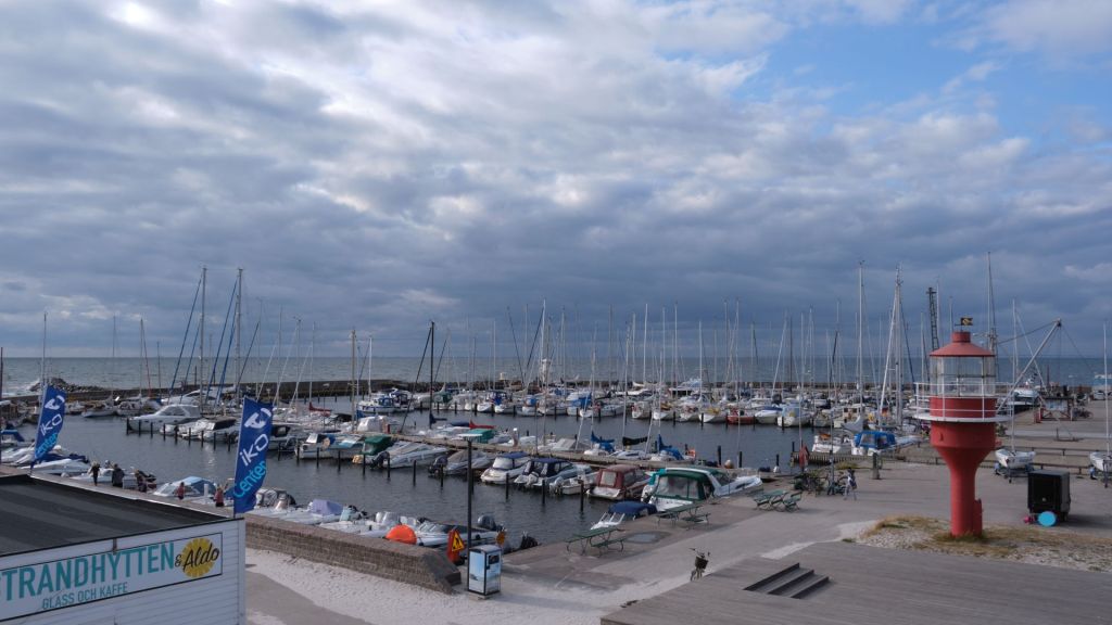 Am Morgen legen wir bei trübem Wetter ab und hoffen auf Wind und werden nicht enttäuscht. Zwar kommt er aus NW, aber wir erreichen mit einem schönen Anlieger Helsingør. Immer wieder ein erhebendes Gefühl, durch diese Meerenge zwischen dem Schloss und dem gegenüberliegenden Helsingborg ins Kattegat zu segeln. Einen Kreuzschlag müssen wir an der schwedischen Küste machen, um weiter nach Norden zu kommen. Gerne wären wir nach Anholt gesegelt, aber der Wind kommt gegen an und wird leider am Haken von Kullen so schwach, dass die Segel bei für den Wind zu starker Welle fürchterlich schlagen. Wir entscheiden uns nach Torekov zu motoren. Dieser schöne Ort ist leider von so vielen Touristen (siehe Beispiel unten), überfallen, dass er zur Kulisse verkommt, denn um den Hafen reihen sich die Restaurants. Wir unternehmen Abendspaziergänge zu ruhigeren Plätzen an der Küste entlang.