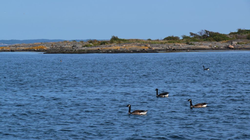 Kurz vor unserem Ziel bergen wir den Spi und ankern in traumhaftem Umfeld. Wir haben uns sehr auf die Schären gefreut, die kurz südlich von Göteborg anfangen. Wir sind von den umliegenden Inseln von allen Seiten geschützt und freuen uns auf einen einsamen Abend vor Anker auf 57°33,44‘N 011°47,67‘E. Das Baden wird aber zu einer taktischen Übung, denn je weiter wir nach Norden segeln, umso mehr Quallen sehen wir. Und diese Quallen haben orangfarbene Tentakeln, die gar nicht lecker aussehen. So veranstalten wir ein Hindernis-Schwimmen. Einer an Bord weist den Schwimmenden einen Weg zwischen den Quallen hindurch, um schmerzhafte Berührungen zu vermeiden.