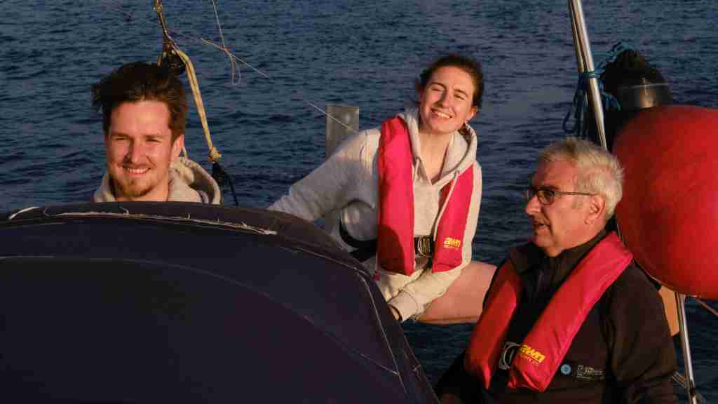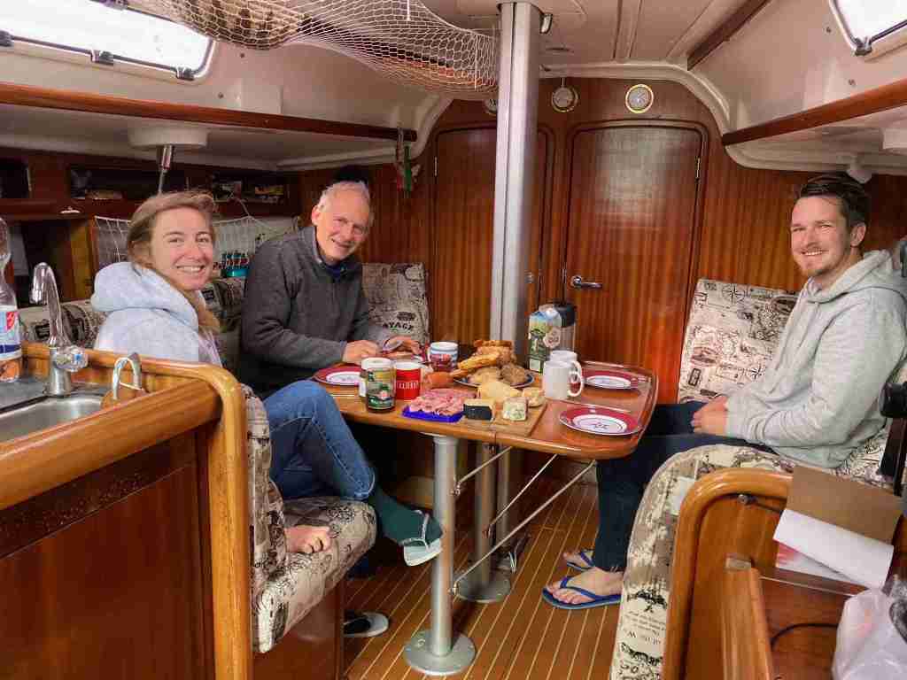Am nächsten Tag haben wir wieder Glück und können Fehmarn mit direktem Kurs und herrlich leichter Brise ansteuern. Pia kommt uns von Lübeck aus besuchen, um Eira und Artur abzuholen. Es war schön, die beiden dabei zu haben, für sie war es das erste Mal an Bord. Sie konnten so das Schiff und mich kennenlernen und freuen sich auf die nächste Etappe im August in Schottland. Stefan kocht uns allen noch ein köstliches Risotto und dann sind wir alleine. Müde legen wir uns früh ins Bett, denn wir wollen morgen früh starten; bis Kiel ist es ein weites Stück und der Wind soll mittags ganz abflauen.