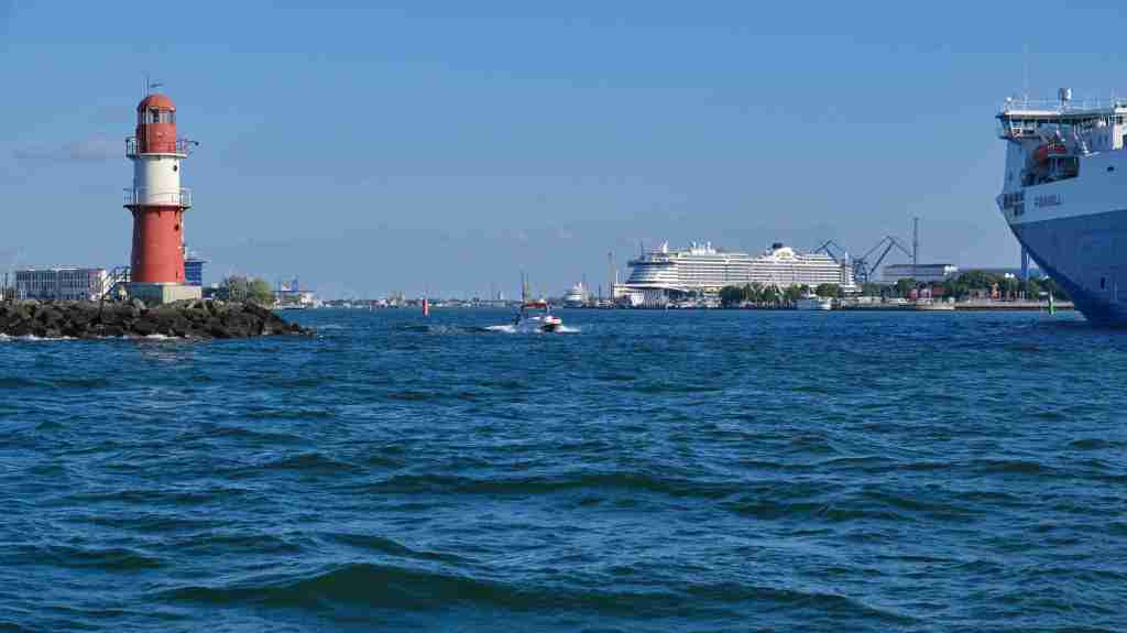 Die See ist noch ungemütlich rau, aber wir kommen gut und zügig voran und finden den gleichen Platz beim Segelclub Warnemünde im alten Strom, den Stefan und ich vor zwei Jahren schon einmal hatten.