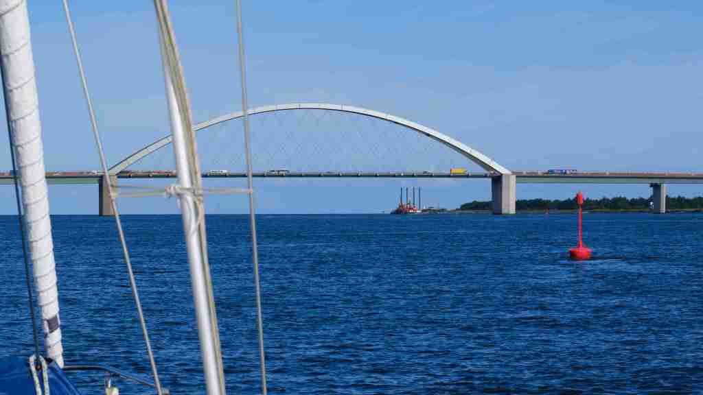 Wir starten mit einer schönen Brise, passieren die Fehmarn-Belt-Brücke und an der westlichen Ansteuerungstonne höre ich einen Anruf „ANKE-SOPHIE, bitte kommen“. Man klärt uns freundlich aber bestimmt auf, dass wir das vor uns liegende Schieß- und Übungsgebiet der Marine Todendorf nicht queren dürfen, sondern komplett umfahren müssen. So ein Mist, denn das bedeutet, dass wir ca. zwei Stunden nach Nord und dann Nordwest aufkreuzen müssen und dann schläft der Wind auch noch ein. Wir lassen uns aber nicht ärgern und starten den Motor, wir sehen es als Eingewöhnung zum Nordostseekanal (NOK) an, wo ja auch viele Motorstunden auf uns warten.