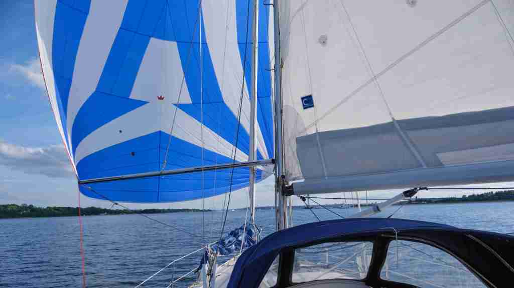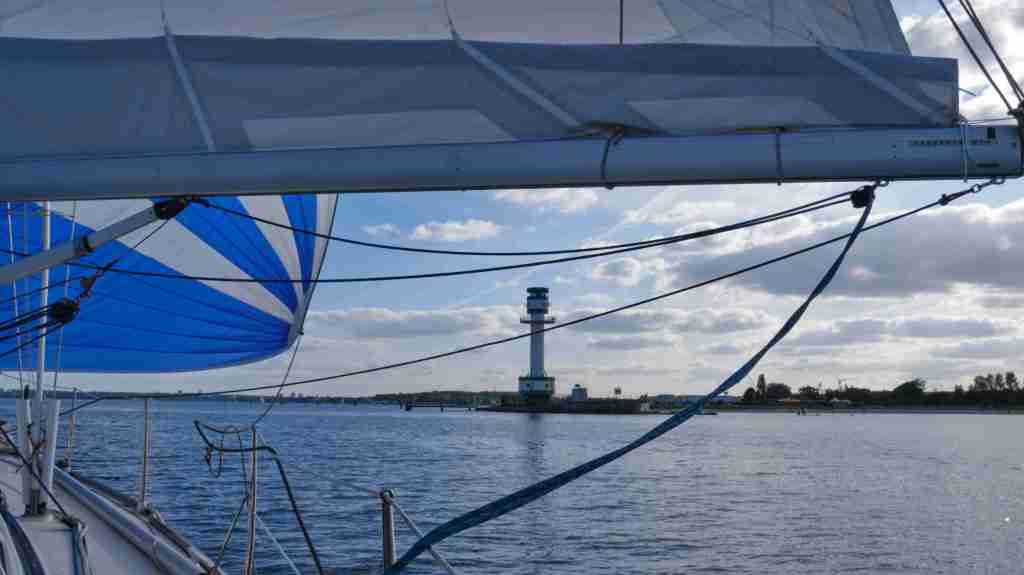 Dann kommt doch der erwartete Ostwind und wir setzen den Spi. Was für eine Entschädigung! Wir gleiten auf ruhiger See hinein in die Kieler Förde am Leuchtturm Kiel-Friedrichsort vorbei. Wir steuern den Yachthafen Wik an, Stefan will seinen ehemaligen Segelverein SVK besuchen, die Segelvereinigung Kiel. Dort finden wir tatsächlich einen freien Platz für ANKE-SOPHIE und ein netter Nachbar leiht uns seine Zugangskarte, damit wir Toiletten und Duschen nutzen können. Davor zieht es uns aber in den Biergarten „Forstbaumschule“, ein weiterer toller Tipp von Stefan für einen guten Tagesausklang, auch wenn es morgen wieder früh losgehen soll.