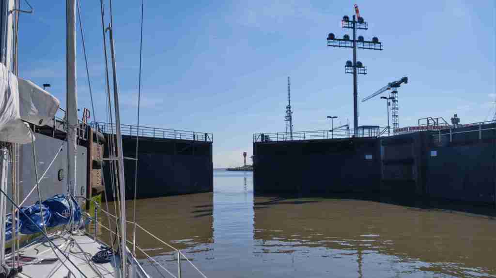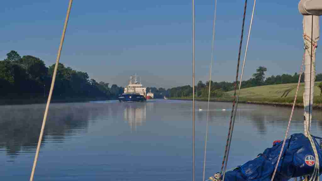 Wecken 04:30 Uhr, wir wollen so früh wie möglich die Schleuse Kiel-Holtenau nehmen, um die 52 Seemeilen durch den NOK in einem Rutsch motoren zu können. Es sind immer wieder schöne Momente, wenn man sich aufrafft, früh aufzustehen, wie man am leichten Frühnebel erkennt.